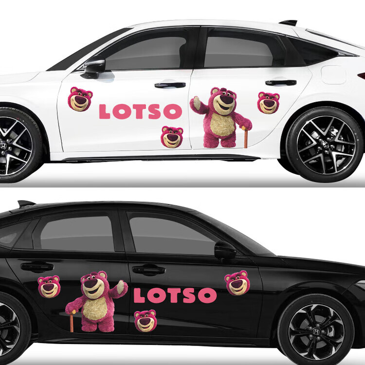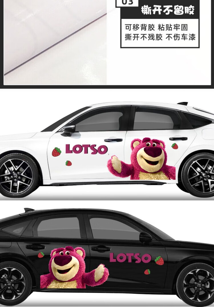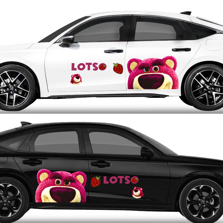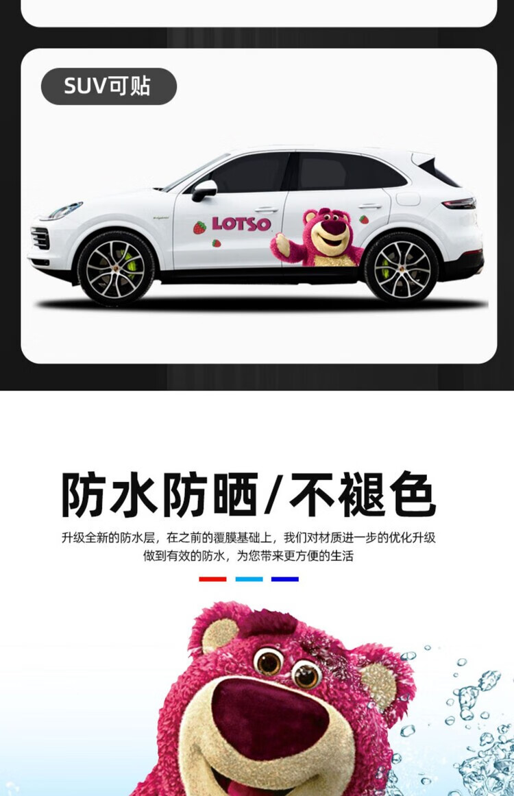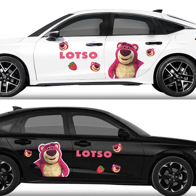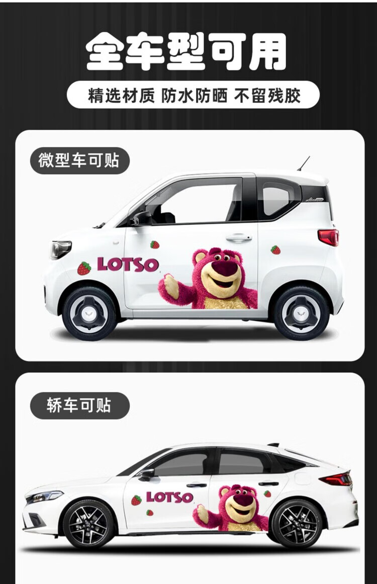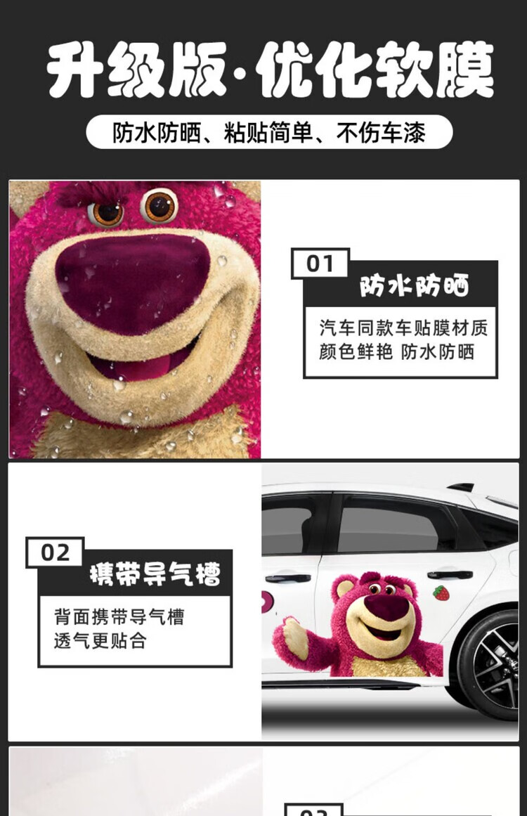 ANGEQI Strawberry Bear Car Sticker Cute Cartoon Body Latte Car Scratch Blocking Sticker Strawberry Bear Car Decorative Sticker A Style Strawberry Bear Both Sides of the Car Body