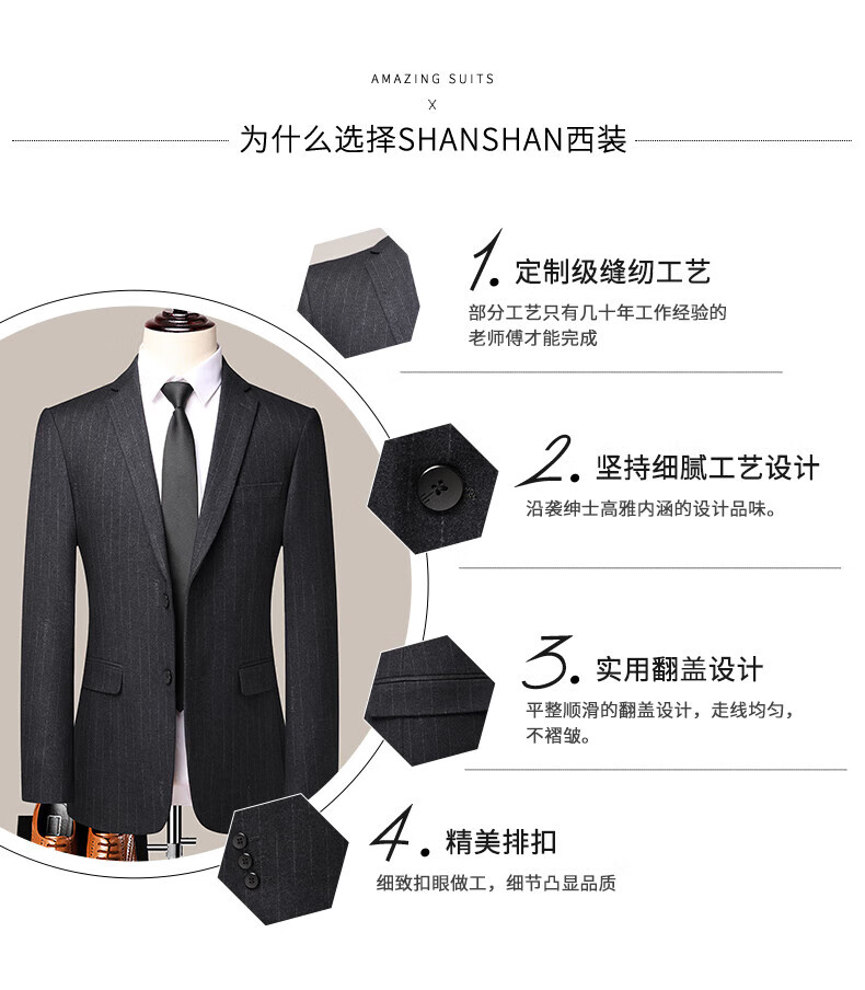 SHANSHAN Shanshan suit men's four-season anti-wrinkle wear-resistant flat lapel suit men's business professional formal jacket men gray 46 /170