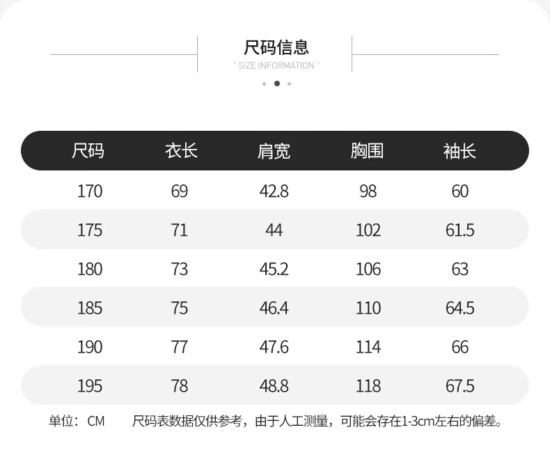 China (cm) 165 / 88-90 170 / 96-98 175 / 108-110 180 / 118-122 185 / 126-130