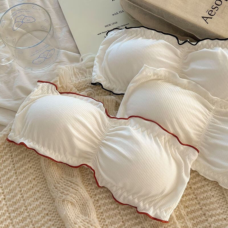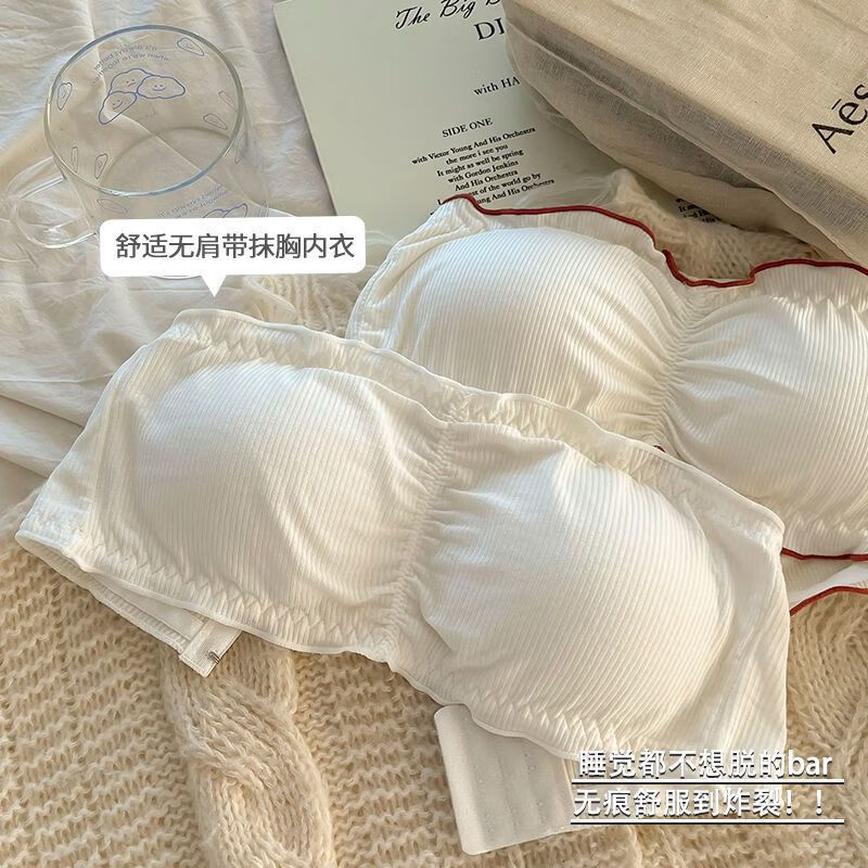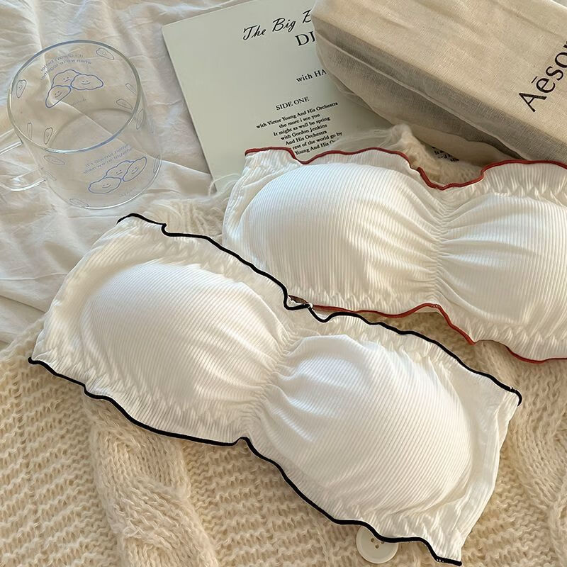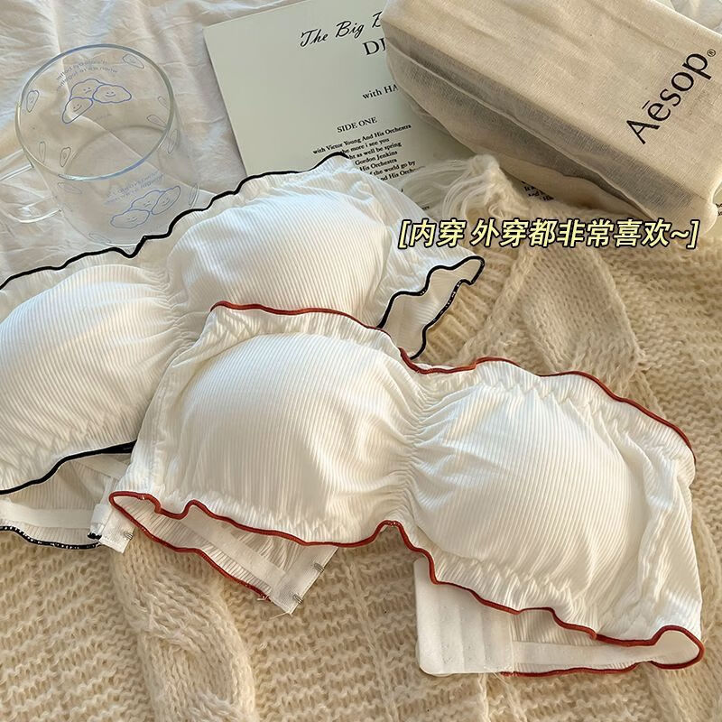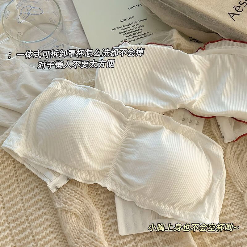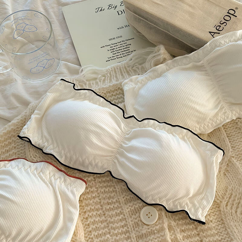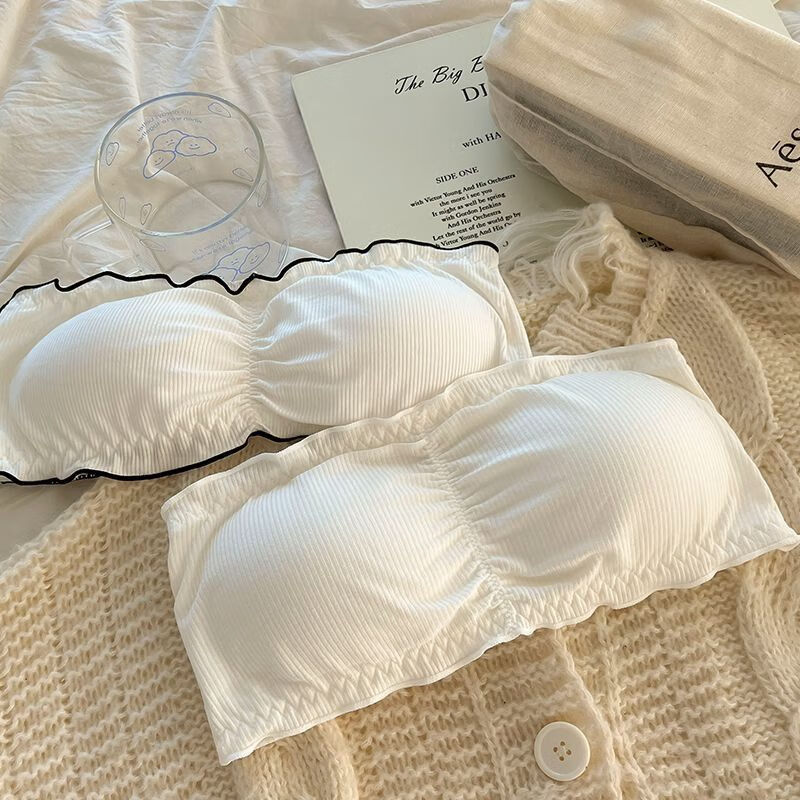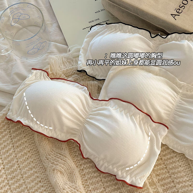 Qingchiying (QINGCHIYING) beautiful back strapless underwear, non-slip, small breasts for students, gathering, traceless, anti-exposure, anti-falling, invisible, slim, thin tube top, black + white M recommended 100-125Jin Jin equals 0.5kg
