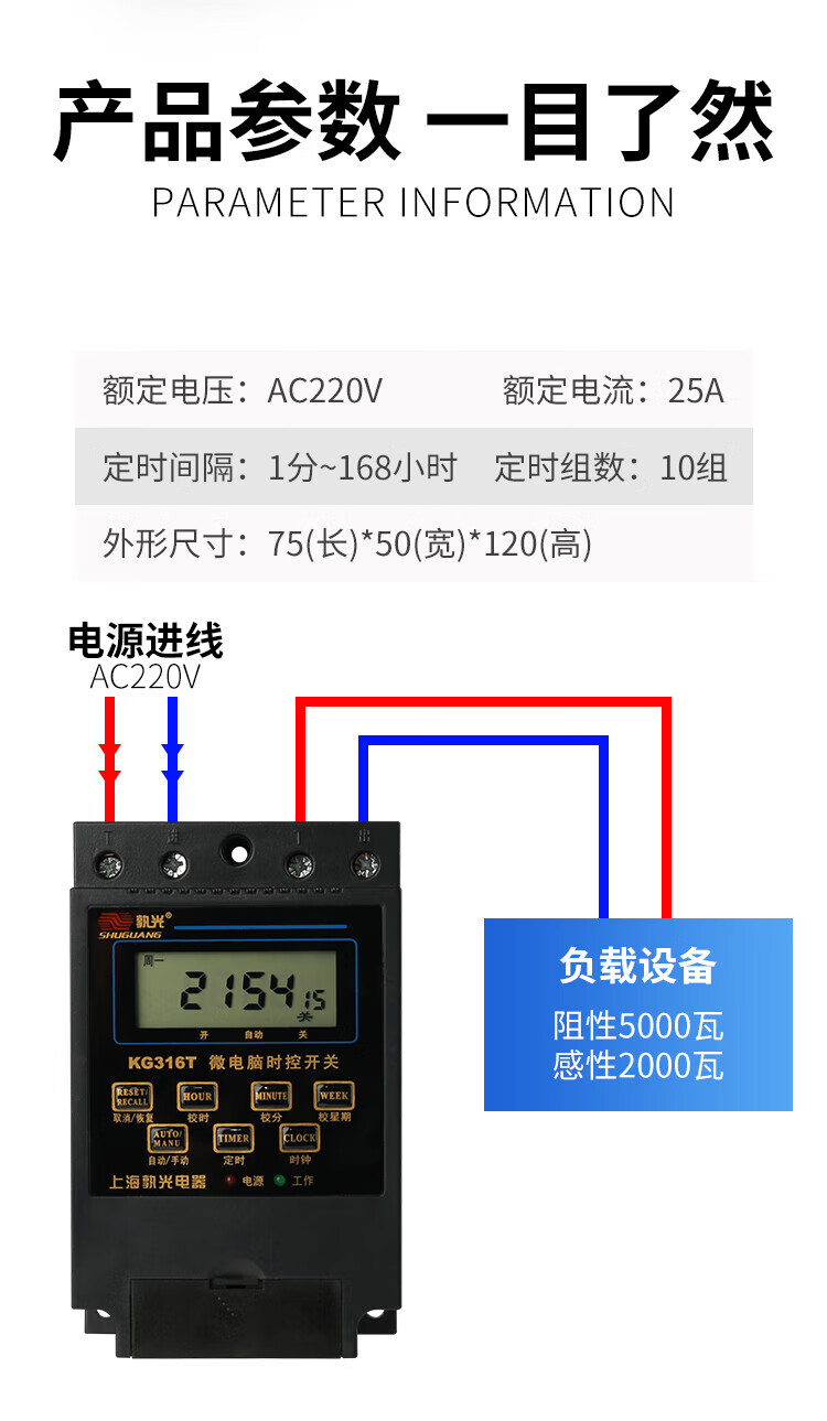 Microcomputer time control switch KG316T time controller 220v fully automatic black old style power supply timing economical model (2500 watts)