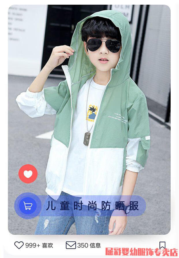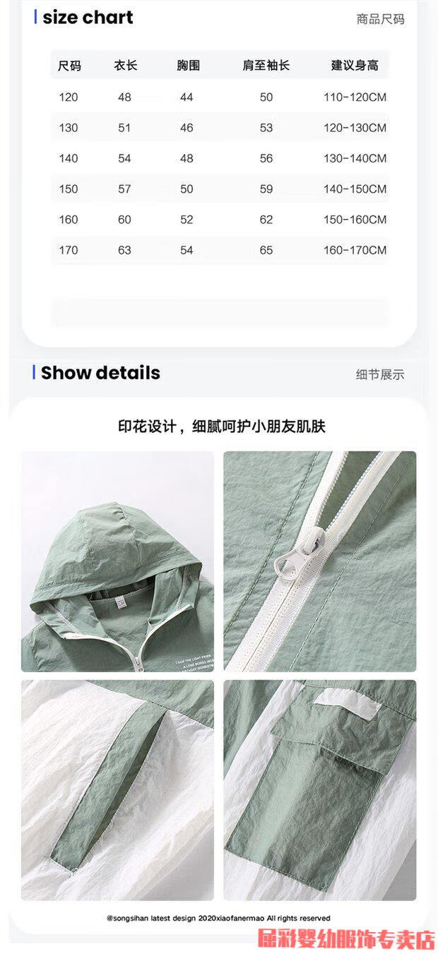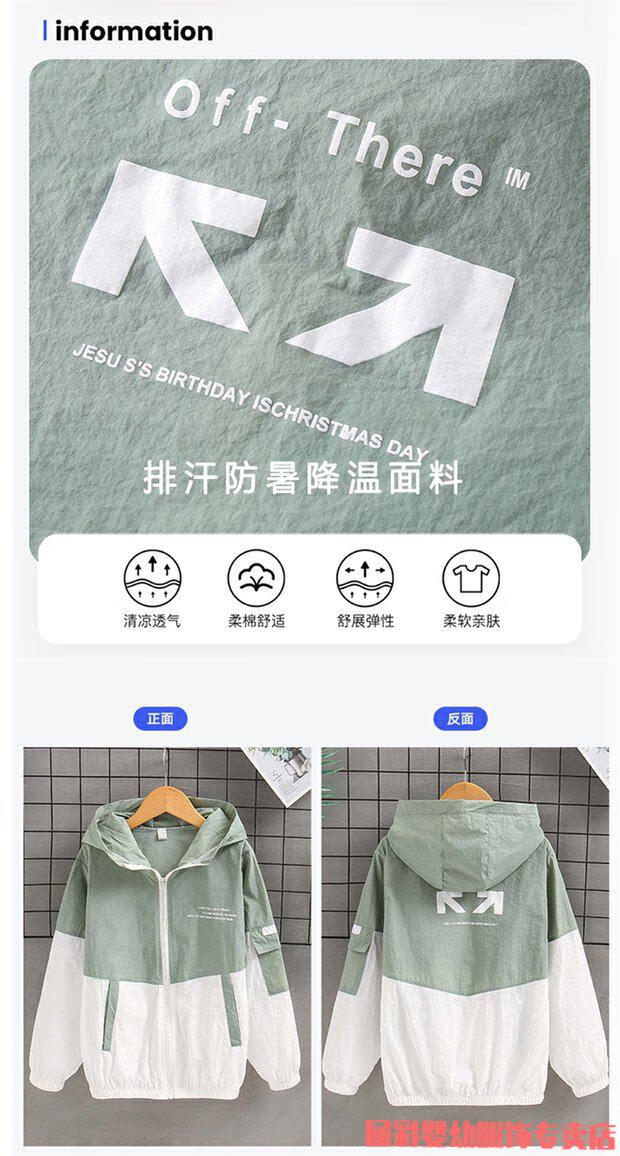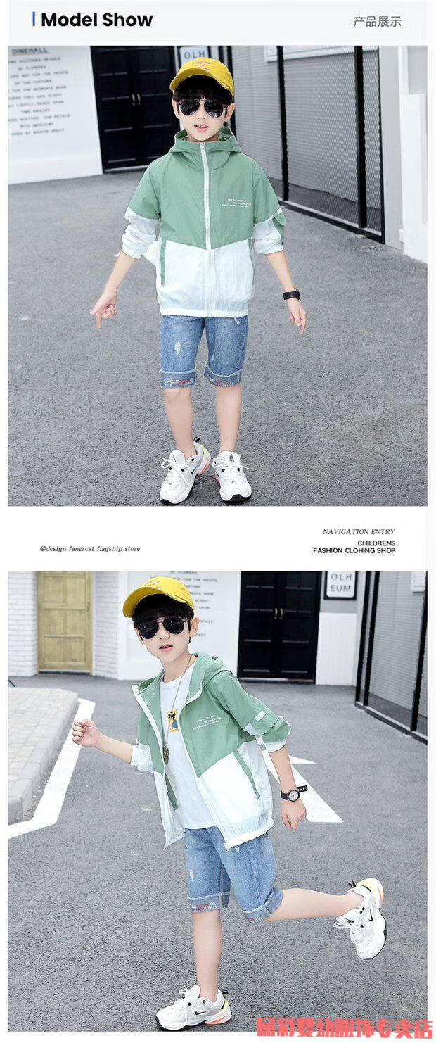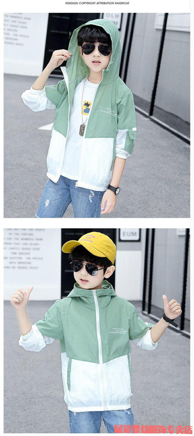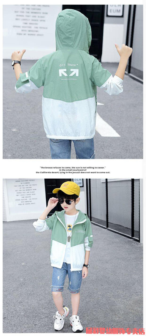 G.DUCKKIDS Children's Sun Protection Clothing Boys 2025 New Medium and Large Children Lightweight Breathable Anti-UV Summer Sun Protection Clothing Jacket Trendy Green 120 cm