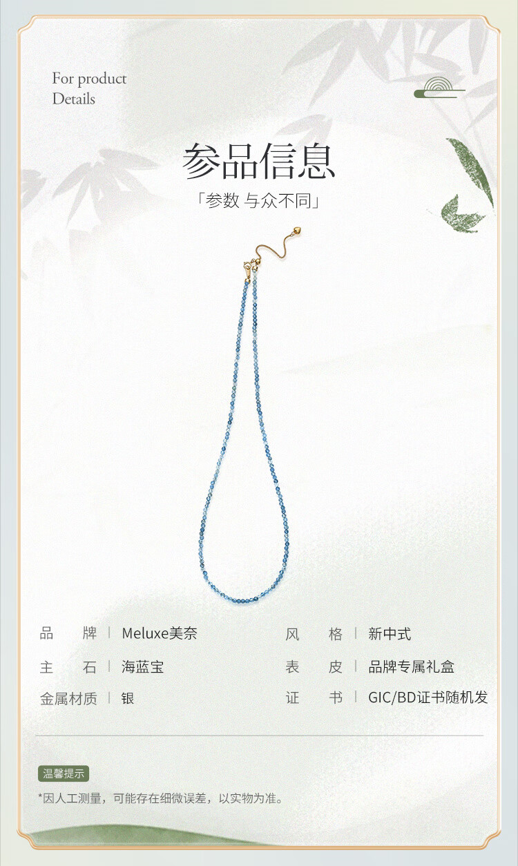 Meluxe S925 silver colored treasure necklace aquamarine necklace Lucky Oriental Glacier birthday gift for my wife 2mm, about 40+5cm long