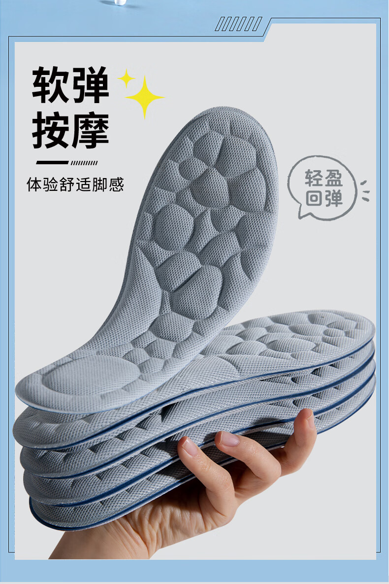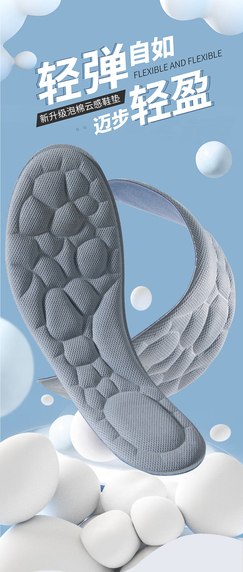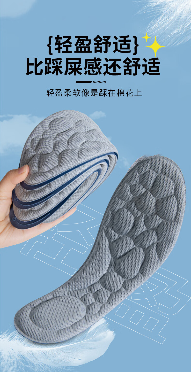 Mugwort deodorant and shit-stepping insole for men, super soft sports air cushion, shock absorption, sweat absorption, deodorant, breathable soft bottom massage, 1 pair, 4D cloud sense new upgrade - gray 37-38