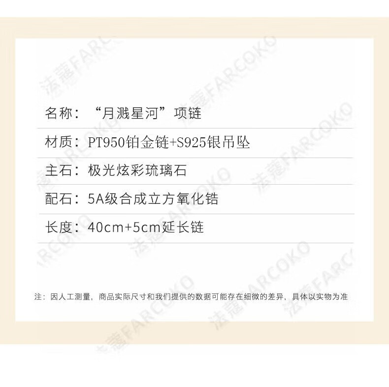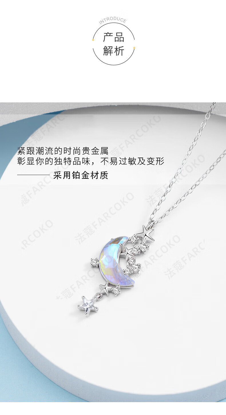 Fakou PT950 platinum necklace women's light luxury niche fashion clavicle chain Christmas Valentine's Day birthday gift for girlfriend Moon Splashing Galaxy