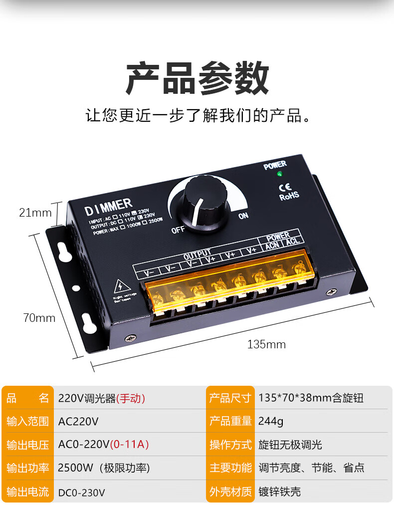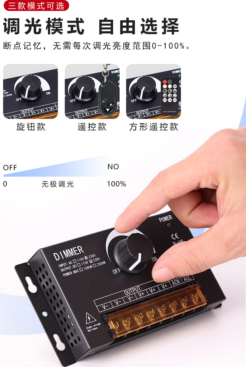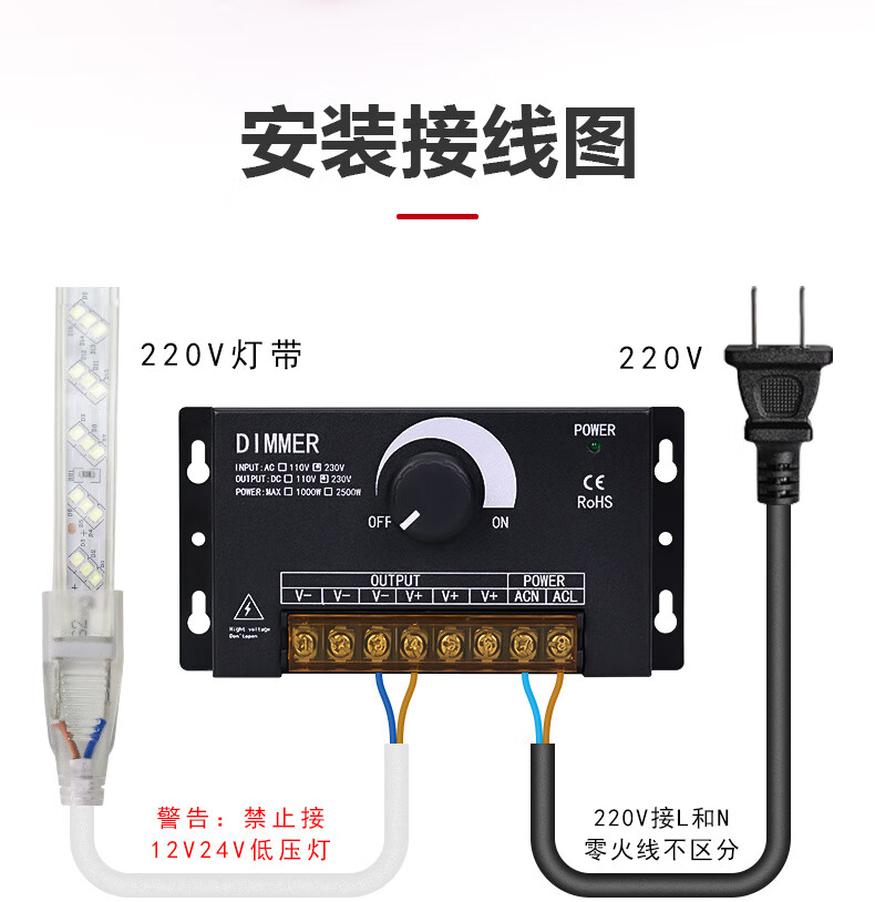 220V dimmer LED high voltage light strip dimming controller 220V remote control (only suitable for 220V light strips)