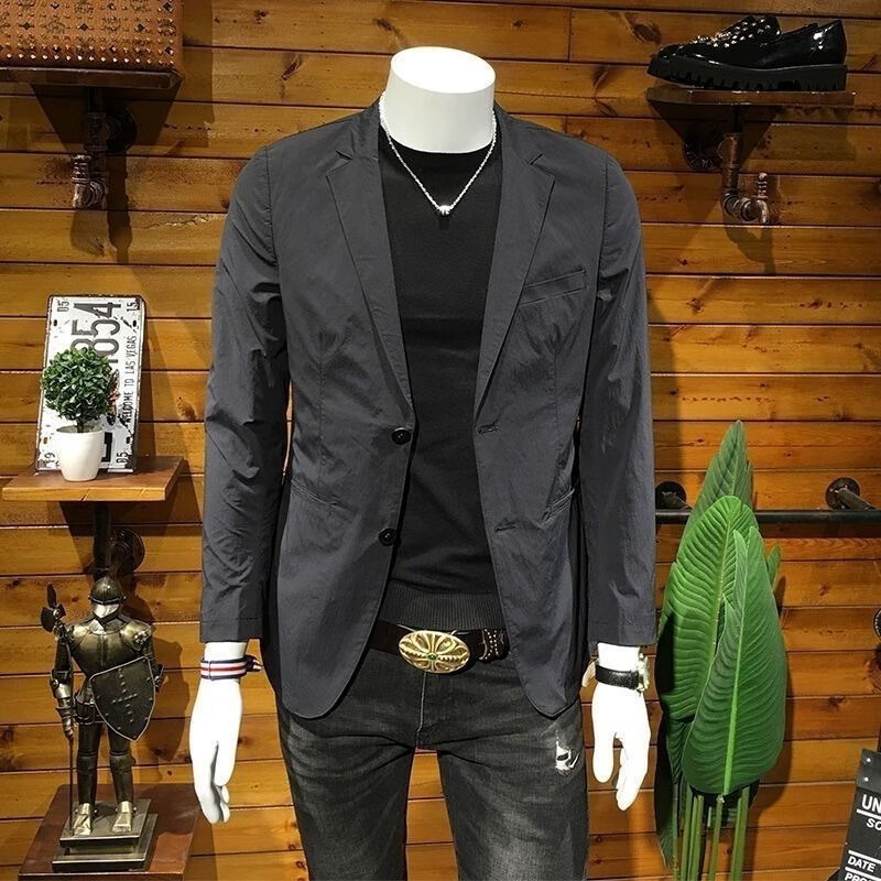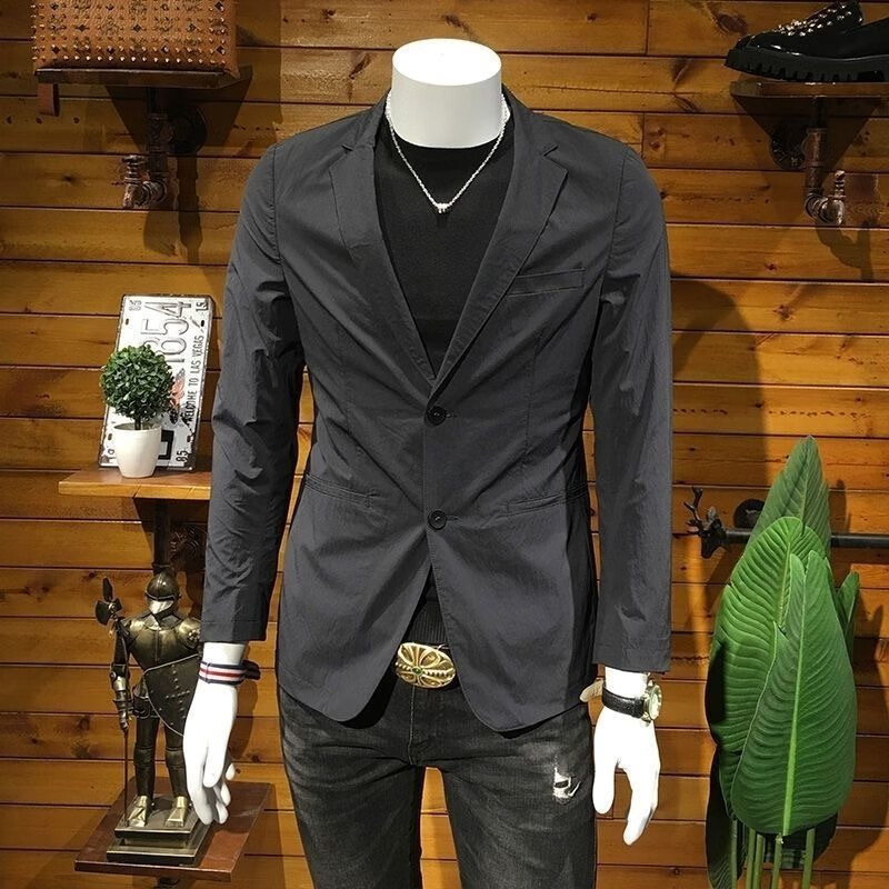 JEEP SPIRIT European Station Men's Wear 2025 Spring and Autumn European Station New Men's Trendy Suit Korean Jacket Black New Product Black Double-breasted Suit Men/Men's Suit/Female 2XL Recommended 150-170Jin Jin is equal to 0.5 kg