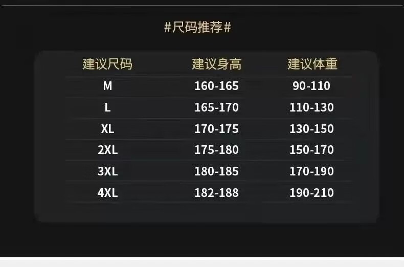 China (cm) 165 / 88-90 170 / 96-98 175 / 108-110 180 / 118-122 185 / 126-130
