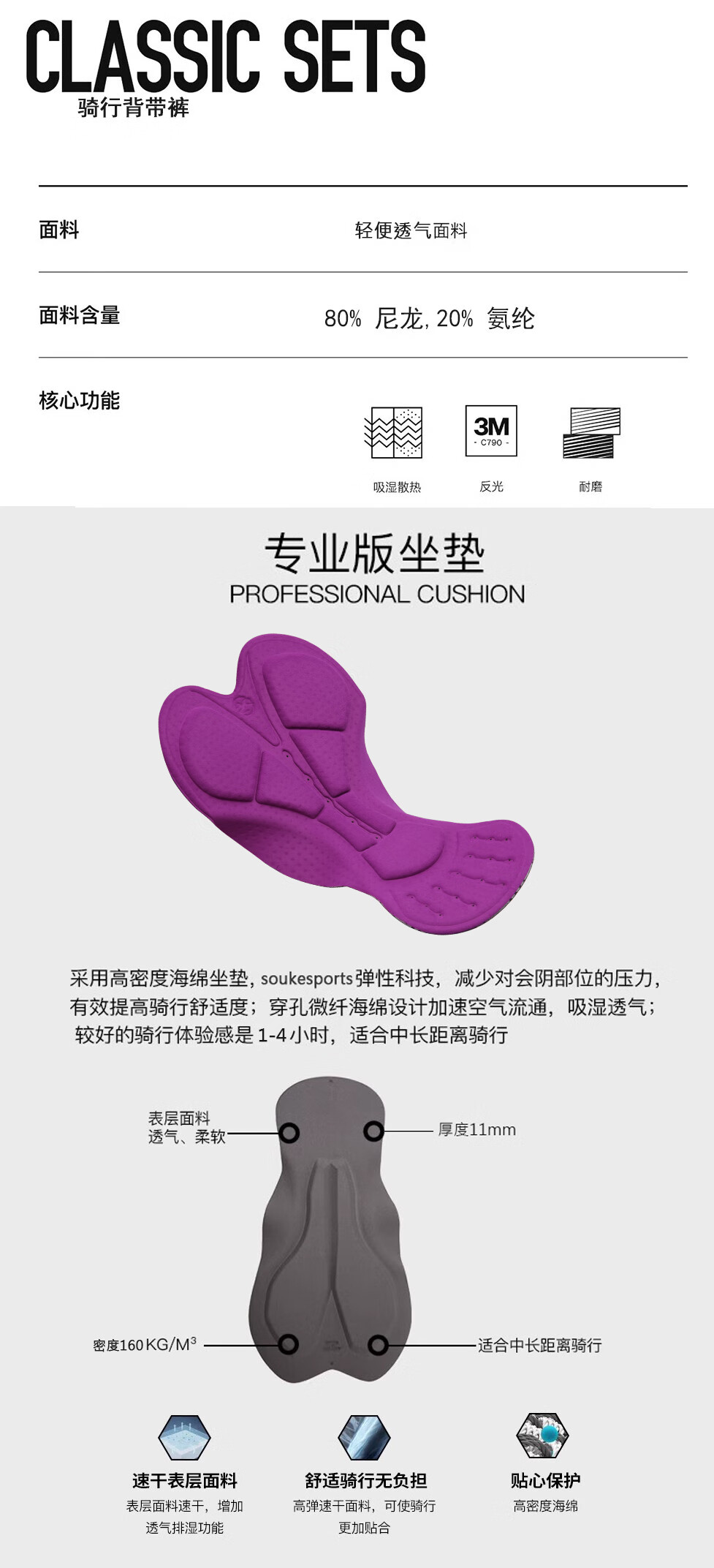 SOUKESPORTS Shuzaki Cycling Bib Pants Men and Women Same Style Cycling Mid-Pants Long Pants Gray Professional Sponge Cushion Spring and Autumn Gray L
