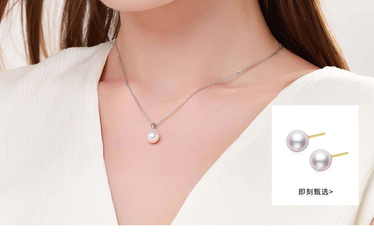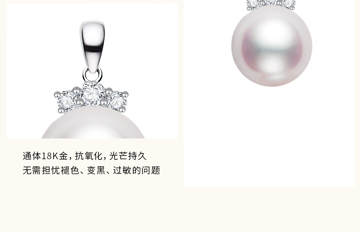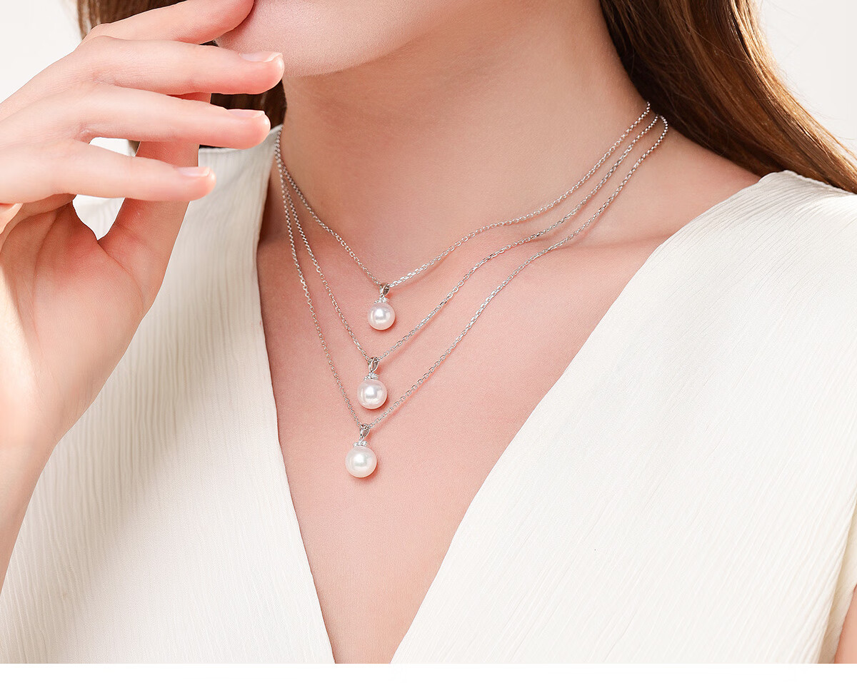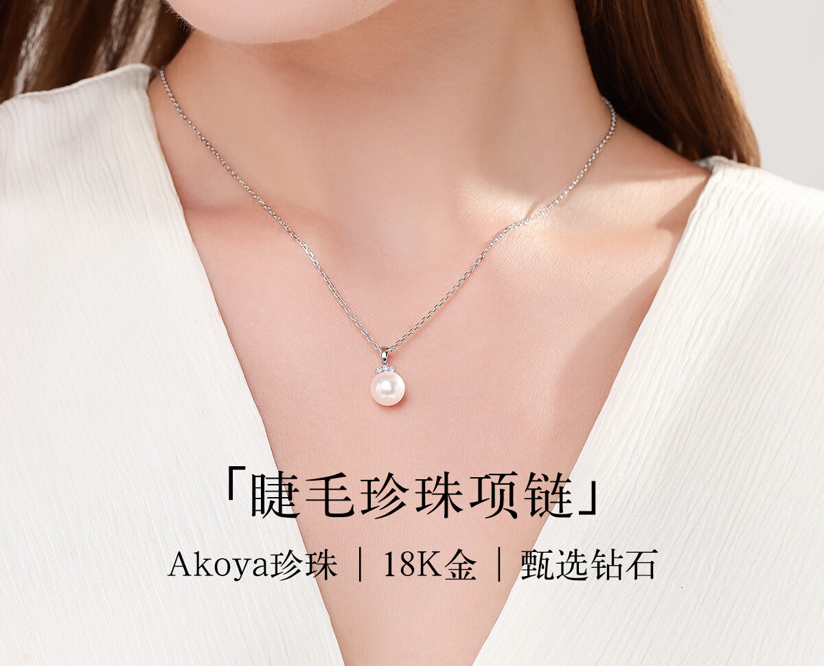 Joyself Seawater Akoya Pearl Necklace 18K Gold Eyelash Pendant Single Natural Diamond Clavicle Necklace for Women Joyself Selected Akoya Pearl Pendant / Free Silver Chain (8-8.5mm)