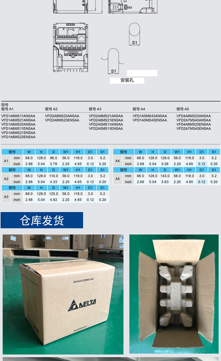 New Delta inverter MS300 replaces VFD-M 0.75kw1.5kw2.2kw3.7kw5.5kw VFD2A8MS21ANSAA 400W 220V