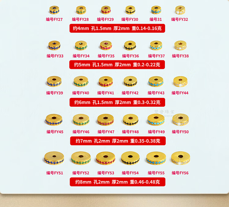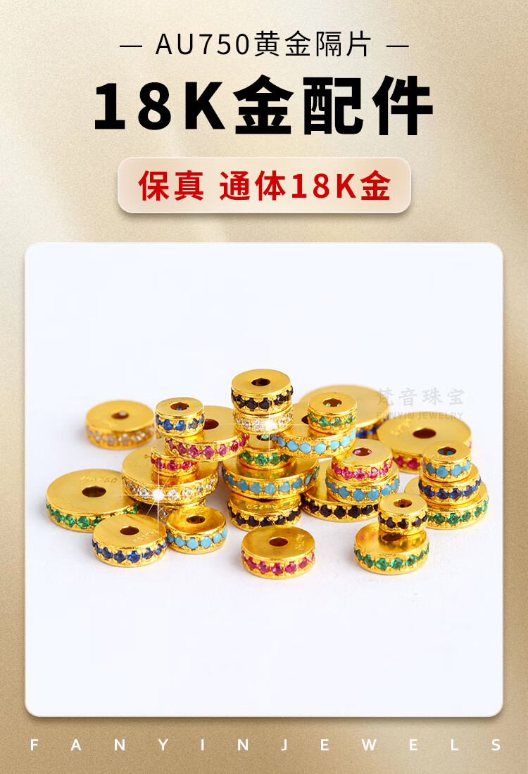 Yu Man pure 18K gold inlaid with straight cut spacers and beads gold accessories handmade diy cultural jewelry hand bead necklace accessories blue pine model about 8mm single 0.46-0.48g