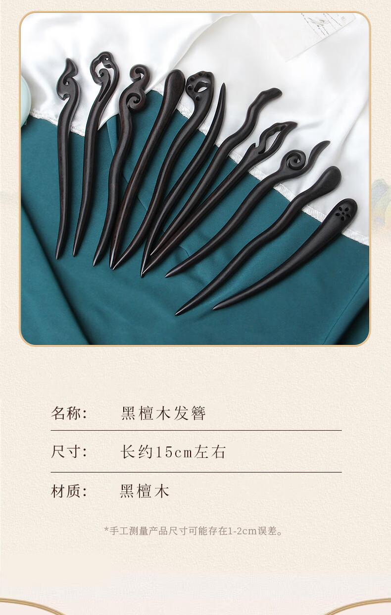 Beautiful black sandalwood hairpin, sandalwood short antique style hairpin, Chinese style daily Hanfu hairpin accessories wooden ebony hairpin 15cm