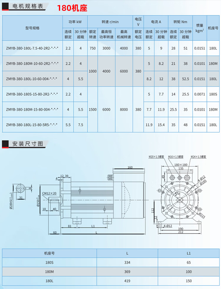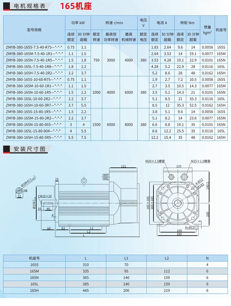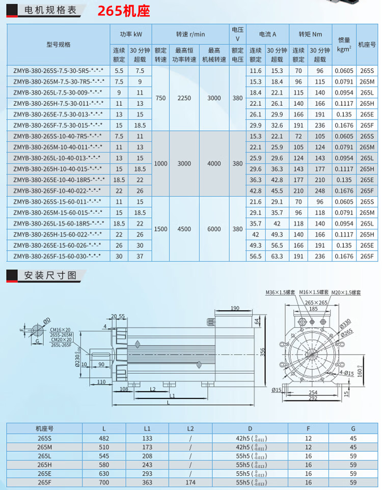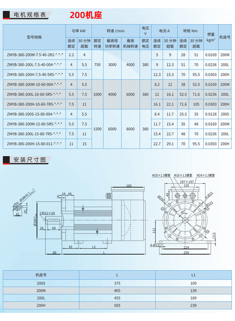 Spindle servo motor high inertia 1.5KW5.5KW7.5KW11KW multi-Specifications lathe milling machine asynchronous set 165 flange 3.7KW6000 rpm motor +