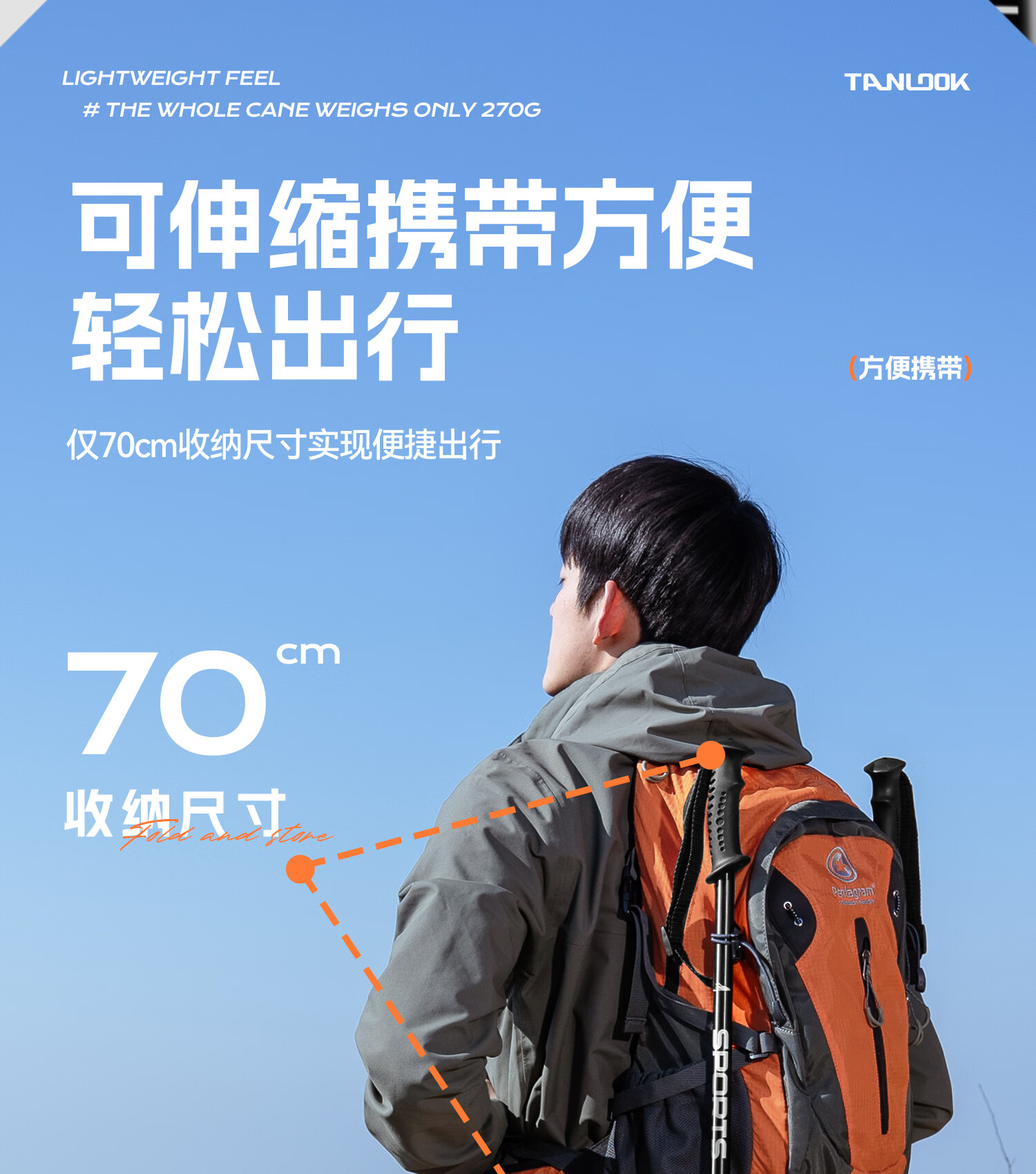 Tanlu trekking pole cane folding professional outdoor mountain climbing crutch equipment hiking crutch aluminum alloy ultra-light telescopic lightweight aluminum alloy telescopic model beautiful yellow 2-piece set