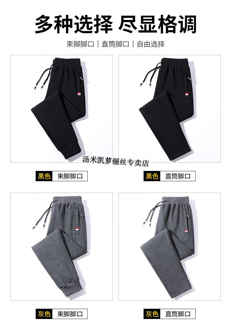 TOME BORNEK Tommy Tommy sweatpants men's autumn and winter velvet pure cotton sweatpants loose thickened men's casual trousers black leggings velvet 2XL