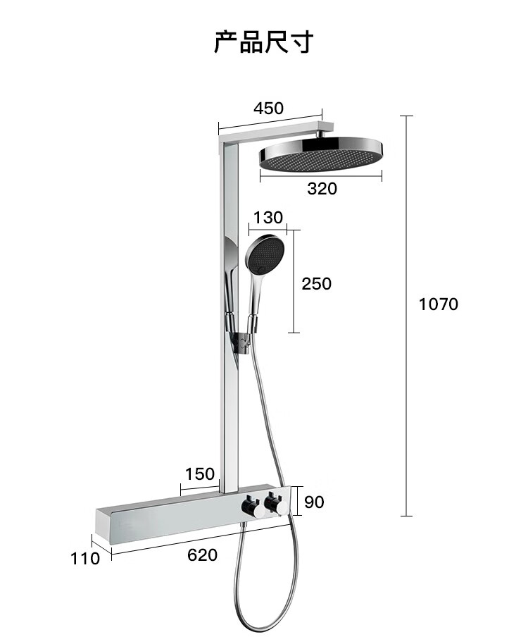 Hansgrohe German minimalist constant temperature 320 gun gray rain shower home bathroom hot and cold water shower set installation silver long (imported handheld)