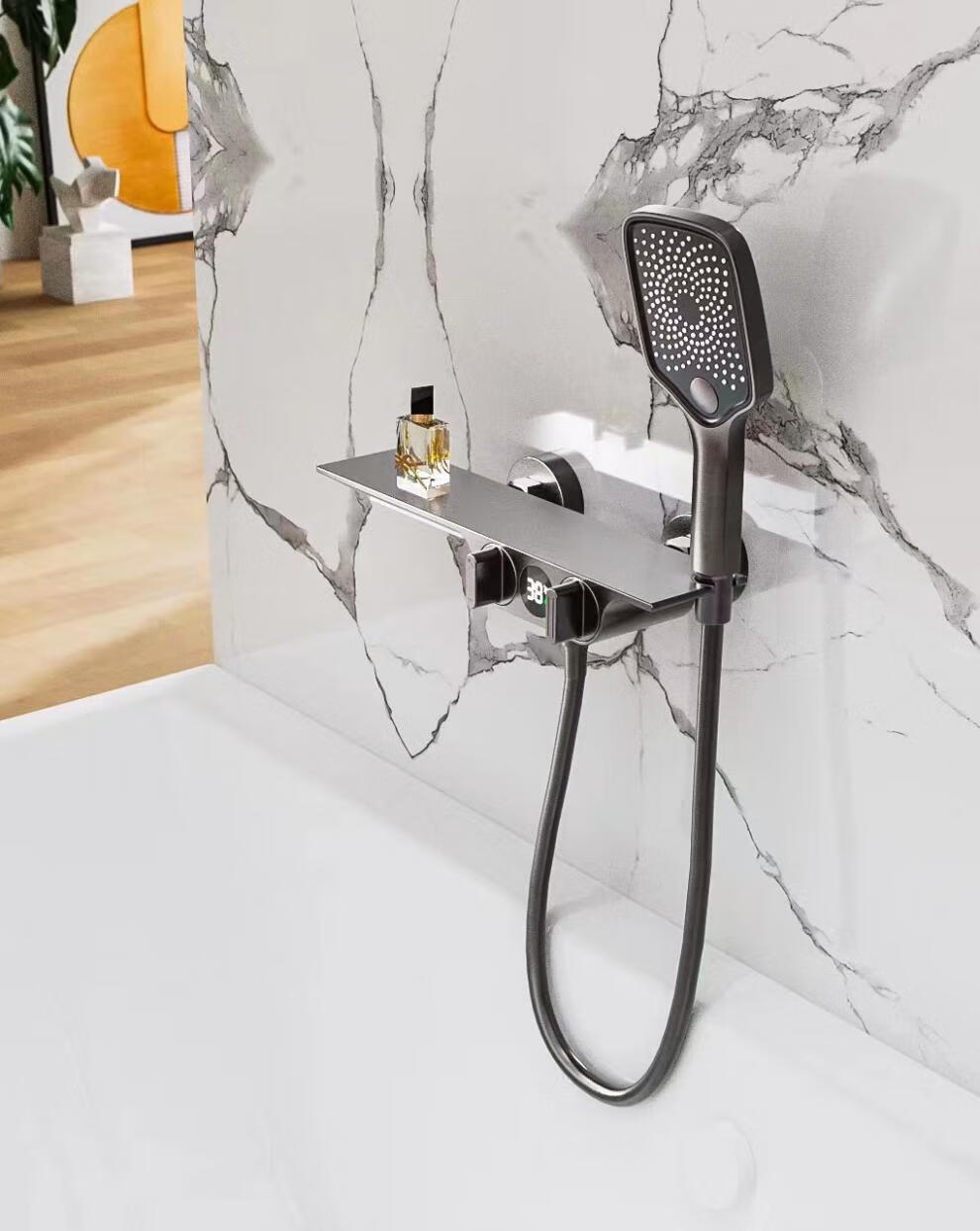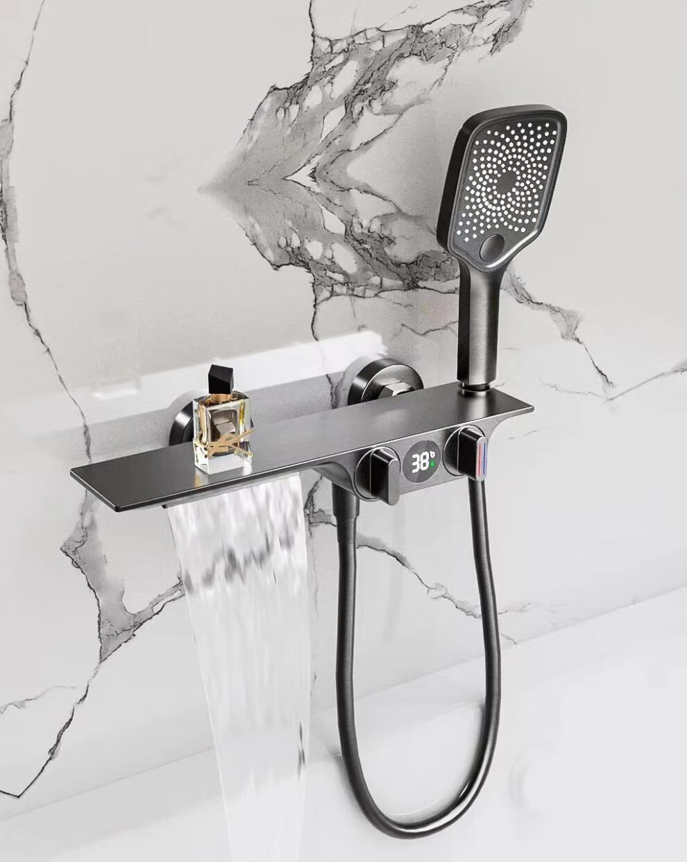 Hansgrohe bath shower set shower gun gray shower single head bathtub bathroom full copper mixing valve without top spray simple silver with lift rod