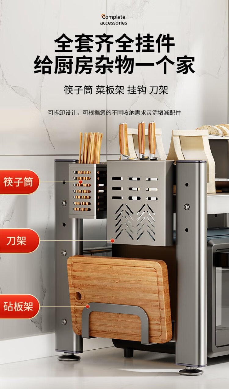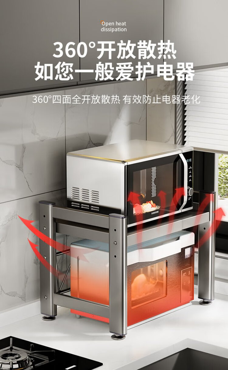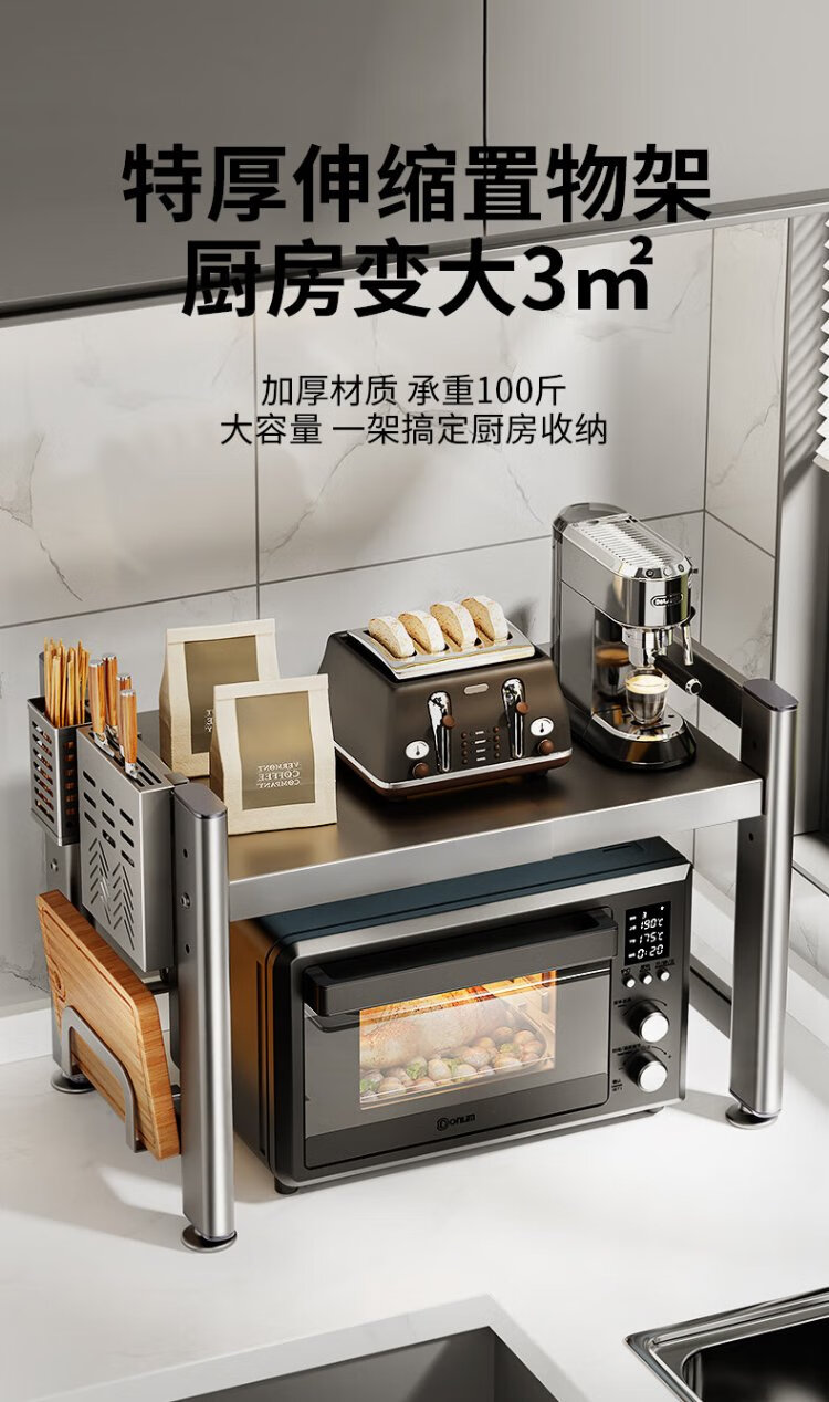 Mrs. Ming's kitchen storage rack countertop microwave storage rack retractable oven rack household multi-layer kitchen storage bracket extra thick and bold fixed 53cm main rack