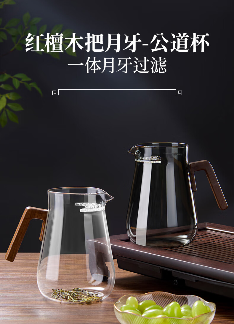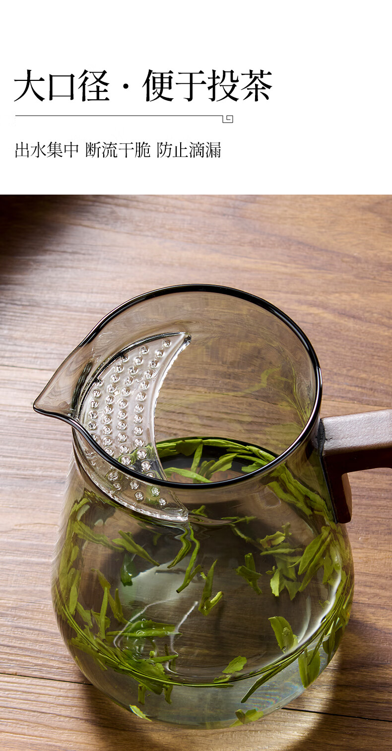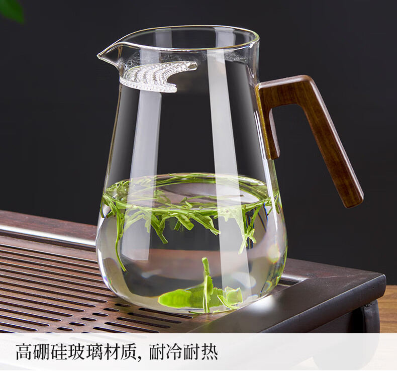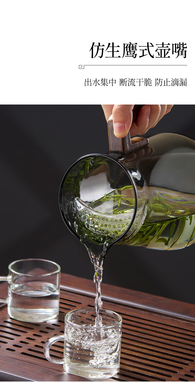 Liexuan glass teapot large capacity crescent cup filter tea brewer tea water separator heat-resistant fair cup green teapot ash crescent teapot 1000ml
