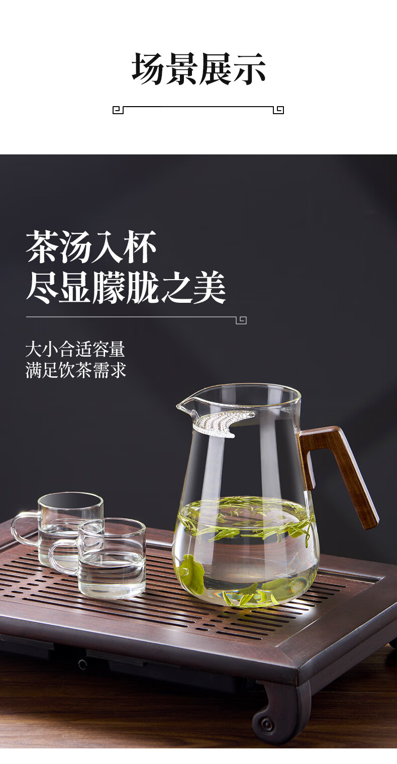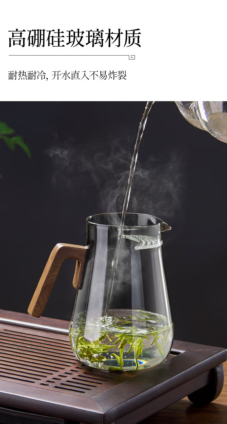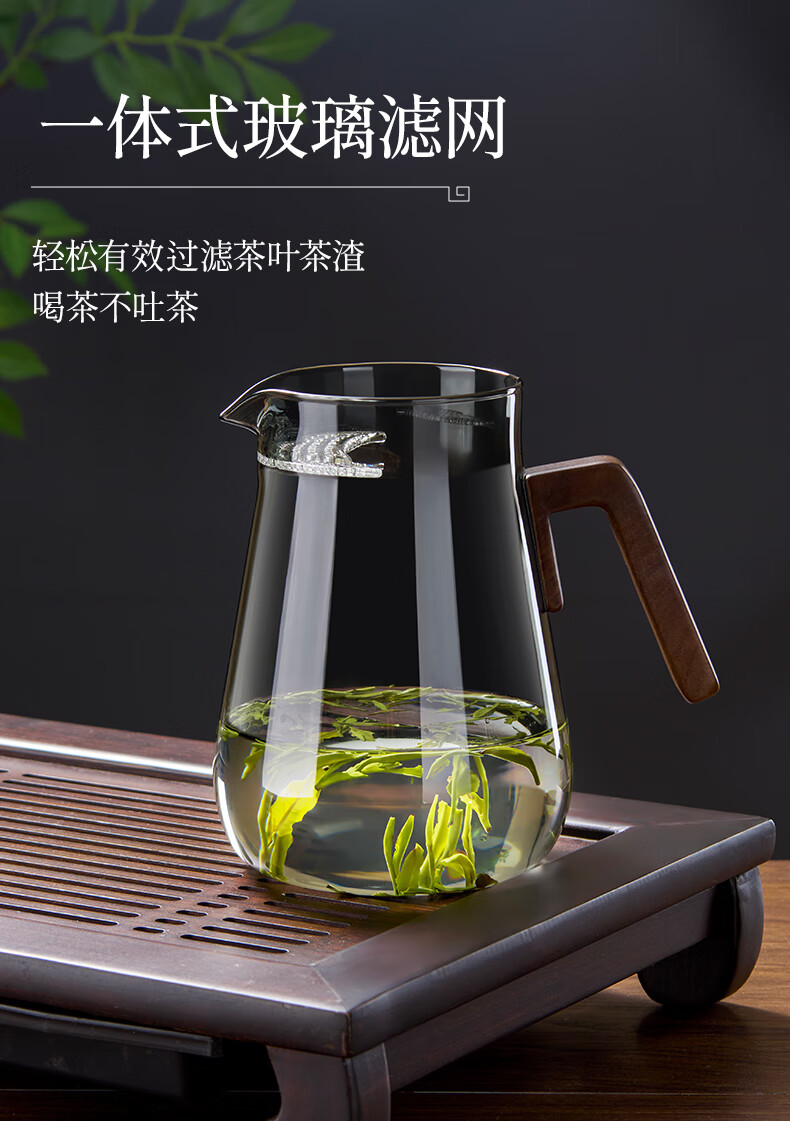 Liexuan glass teapot large capacity crescent cup filter tea brewer tea water separator heat-resistant fair cup green teapot ash crescent teapot 1000ml