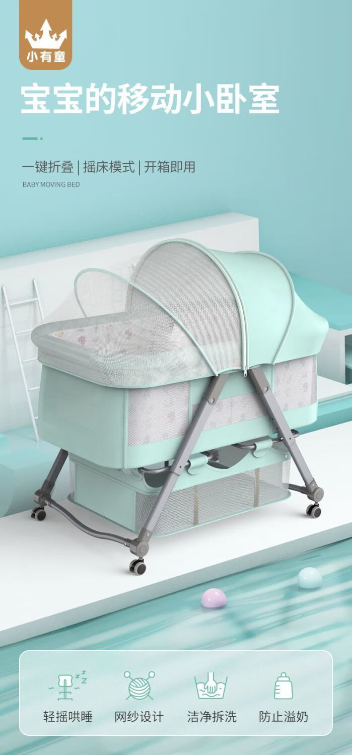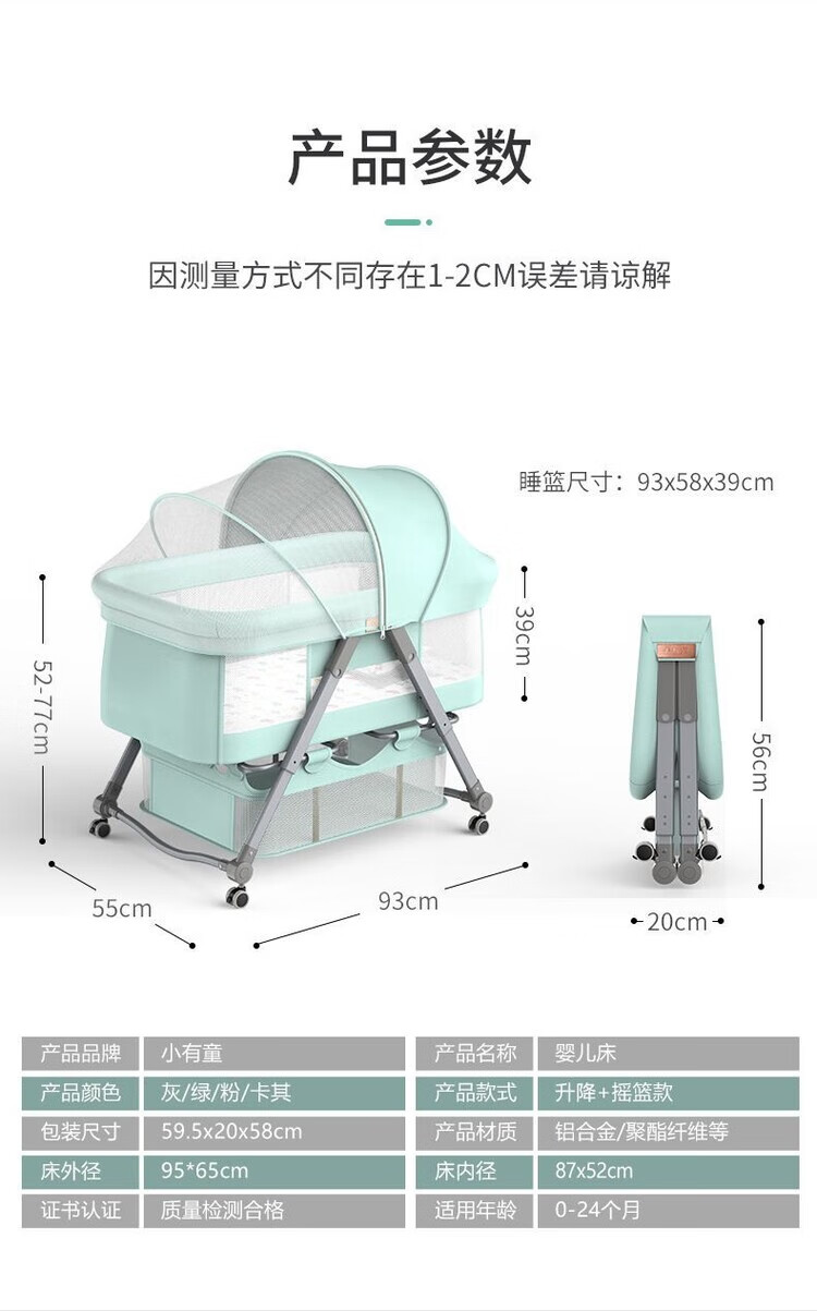 Raf core baby lathe dual-purpose all-in-one baby shaker foldable portable baby splicing bed newborn removable dark gray. Naked bed + random color