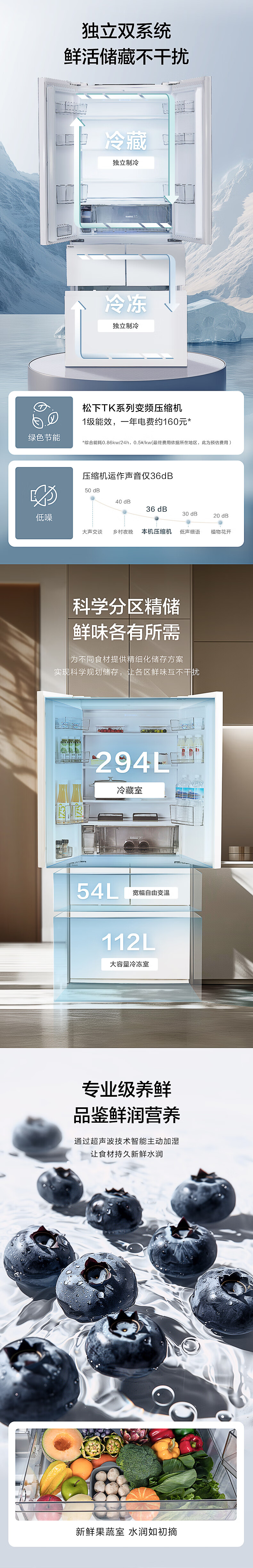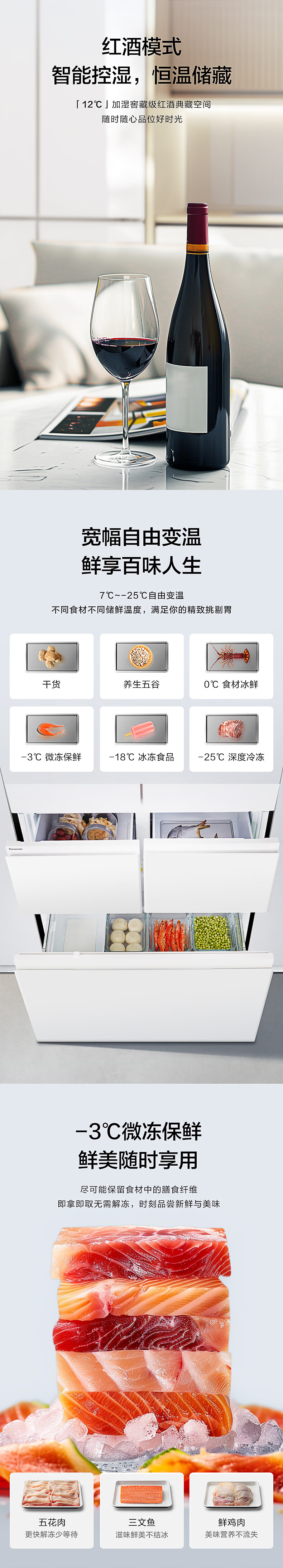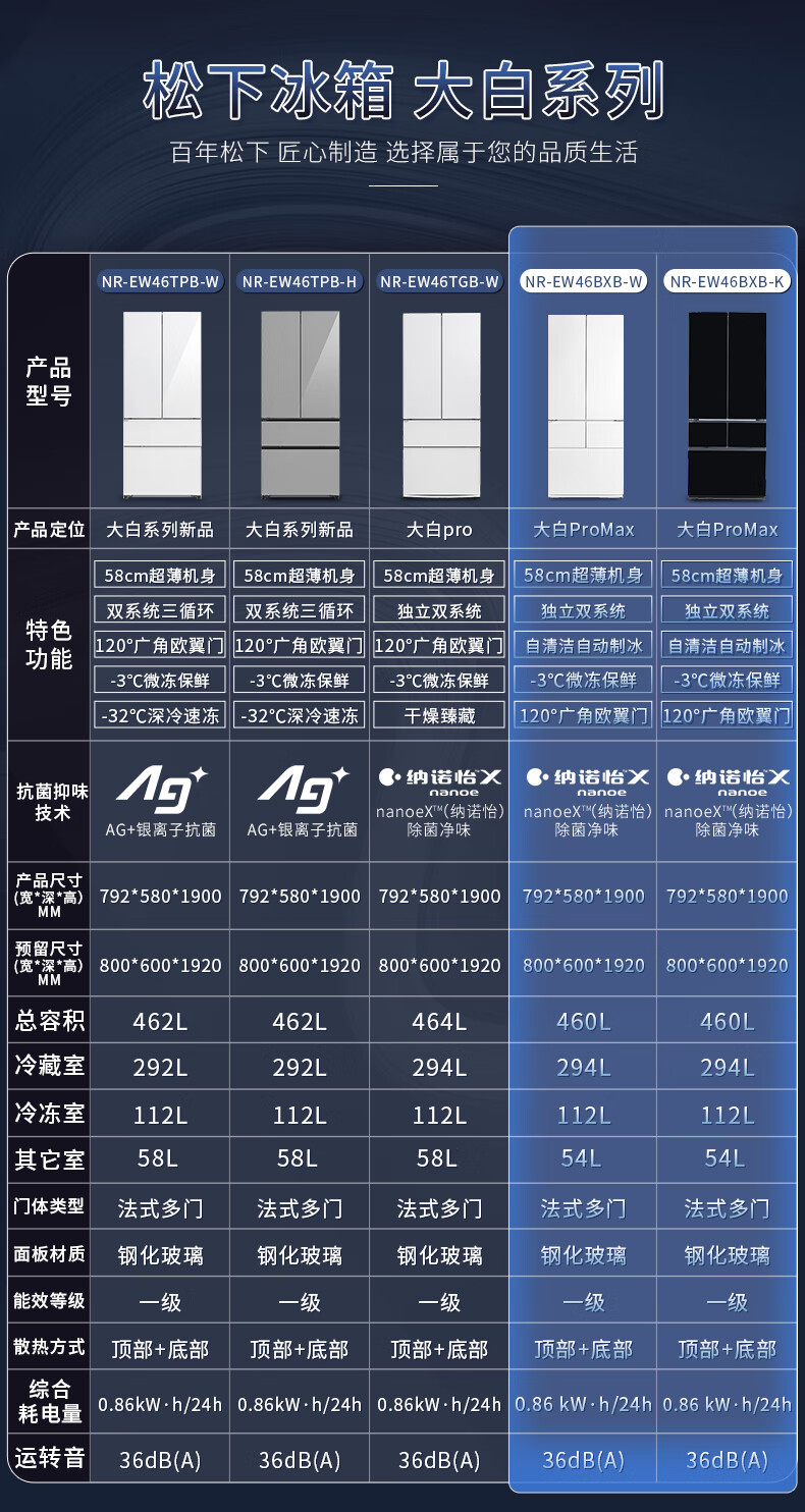 Panasonic 460-liter French-style multi-door five-door refrigerator 58CM deep ultra-thin zero-embedded first-level energy-efficiency dual-cycle dual-system automatic ice making home NR-EW46BXB-W popular Dabai ProMax