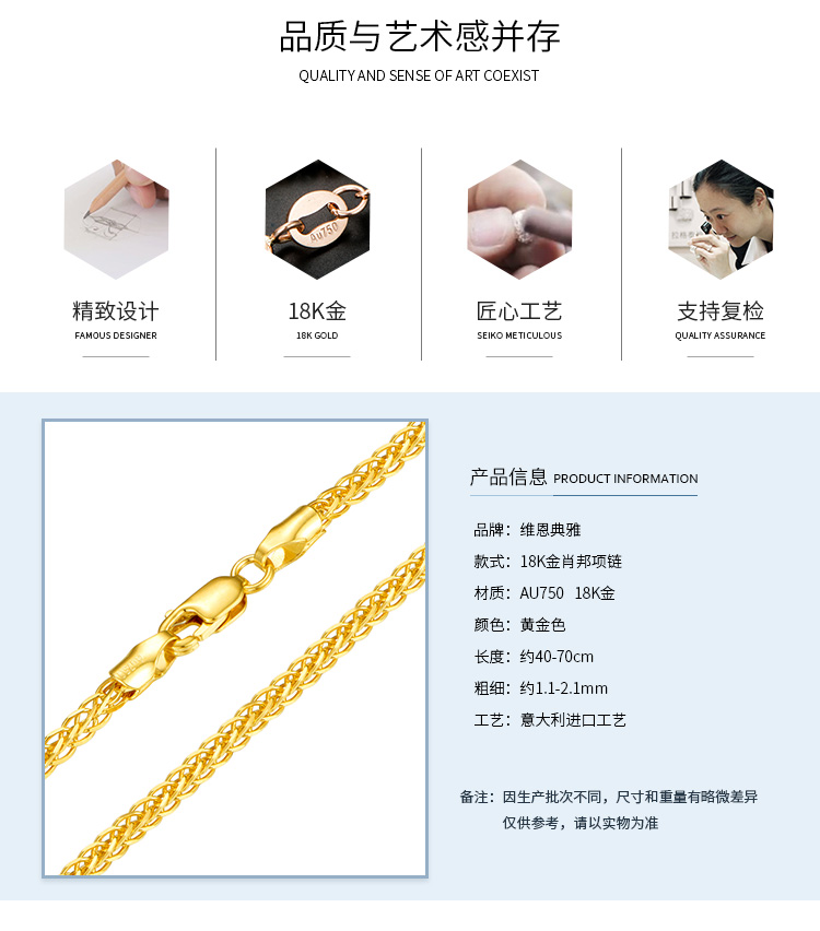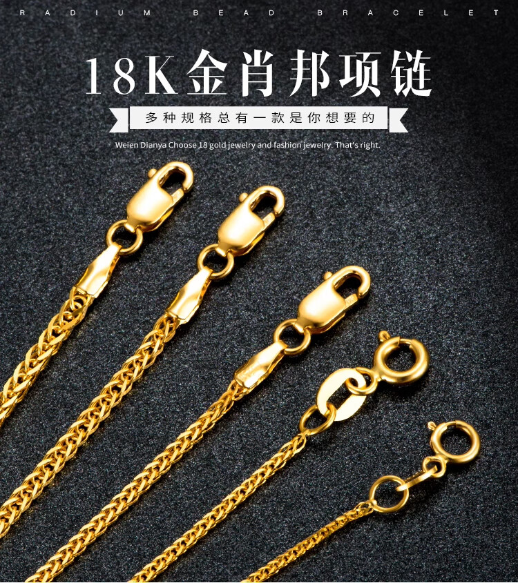 Vienenya 18k gold necklace, gold Chopard necklace, women's clavicle chain, au750 neck chain, genuine extended chain, 43cm, about 2.5-2.6 grams, 1.3mm thick