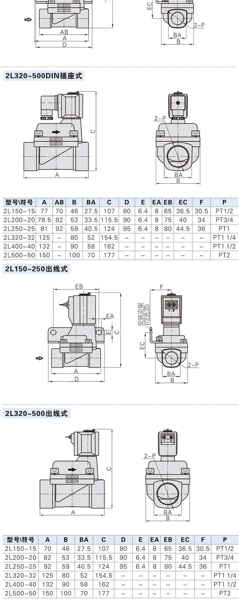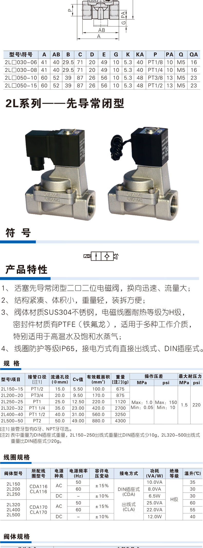 Yadeke stainless steel high temperature solenoid valve 2L030-08/06 2L050/150-10/15 2L200-20 2L500-50 DC24V 2-inch threaded port
