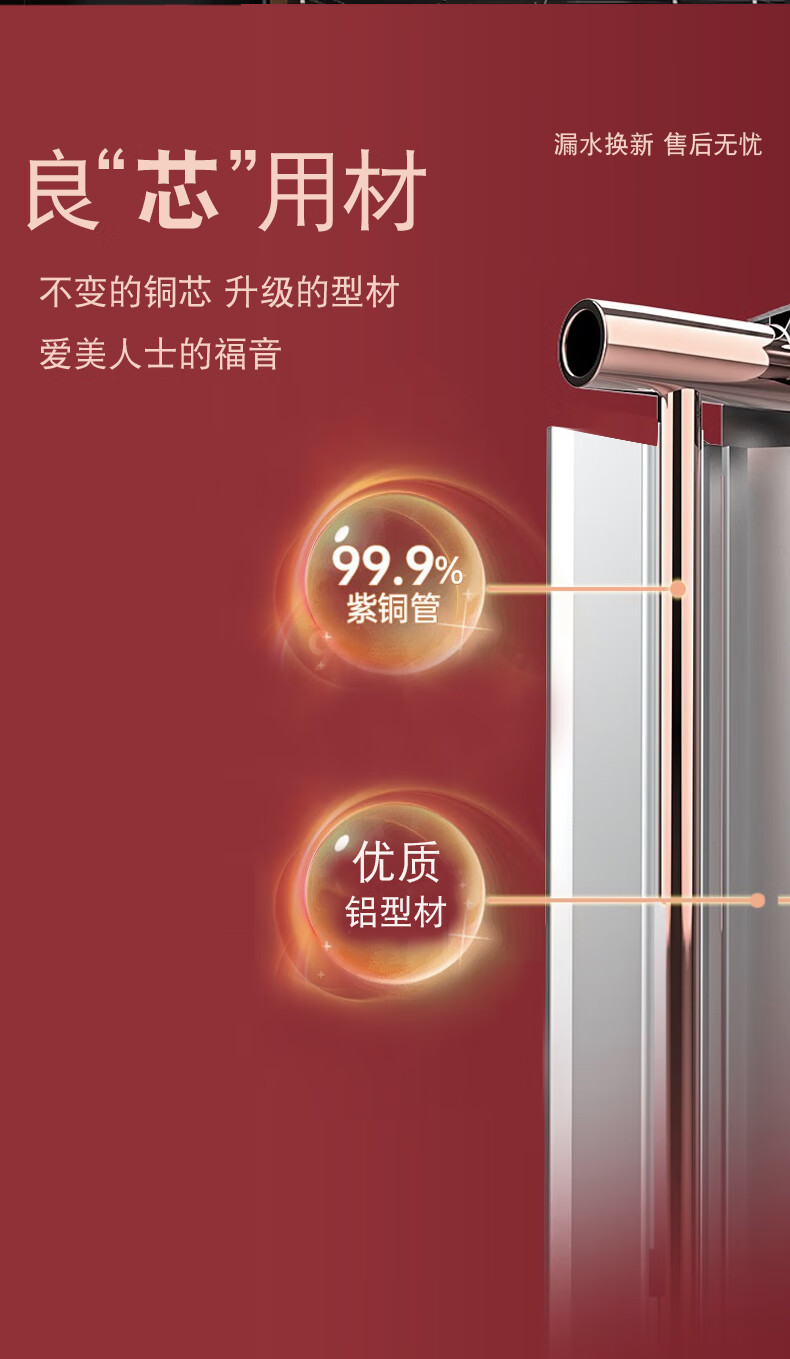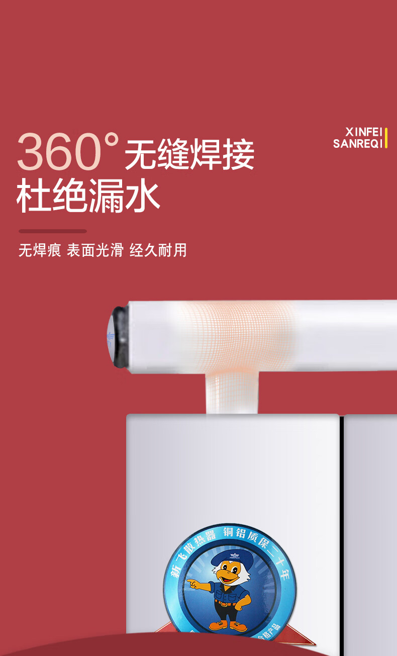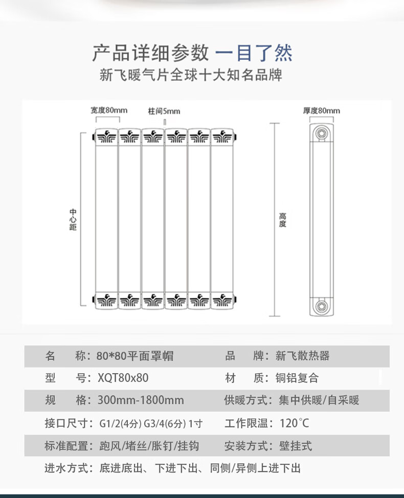 New flying copper-aluminum composite radiator household water heating floor heating wall-mounted living room bedroom air energy 80 pure flat water channel center distance 1800mm
