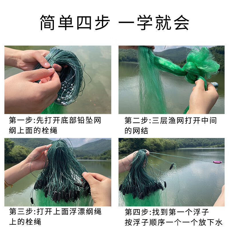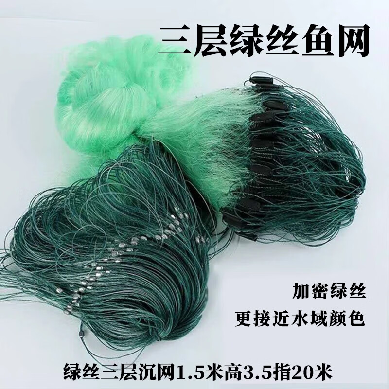 Suican green line fishing net three-layer sunken net fishing crucian carp net white strip net green silk fish net sunken net green wire three-layer sunken net 1.5 meters high 3.5 fingers 20 meters