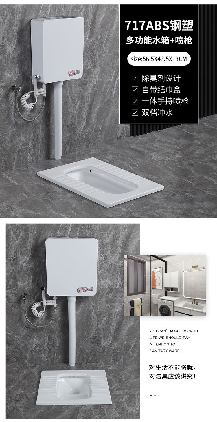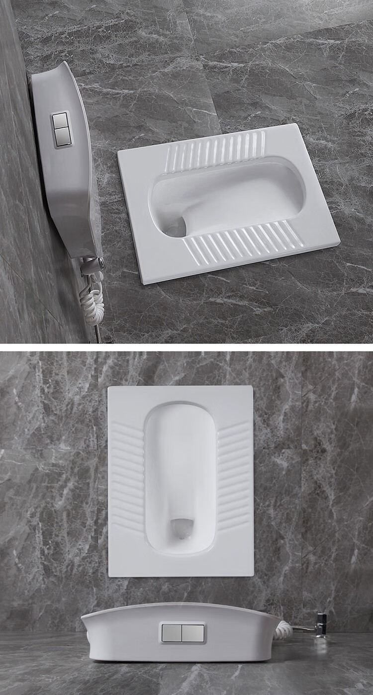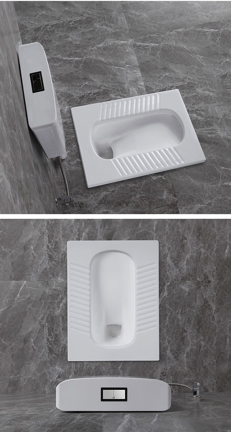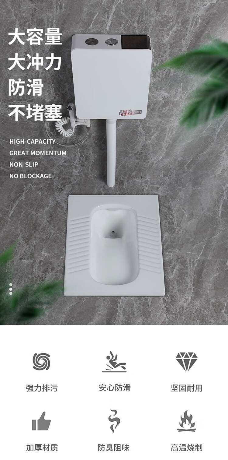 Huida 20cm thin ceramic squat toilet squat type home bathroom potty squat toilet deodorant flushing tank set 15 high no bend rear water outlet + 719ABS steel plastic hand washing
