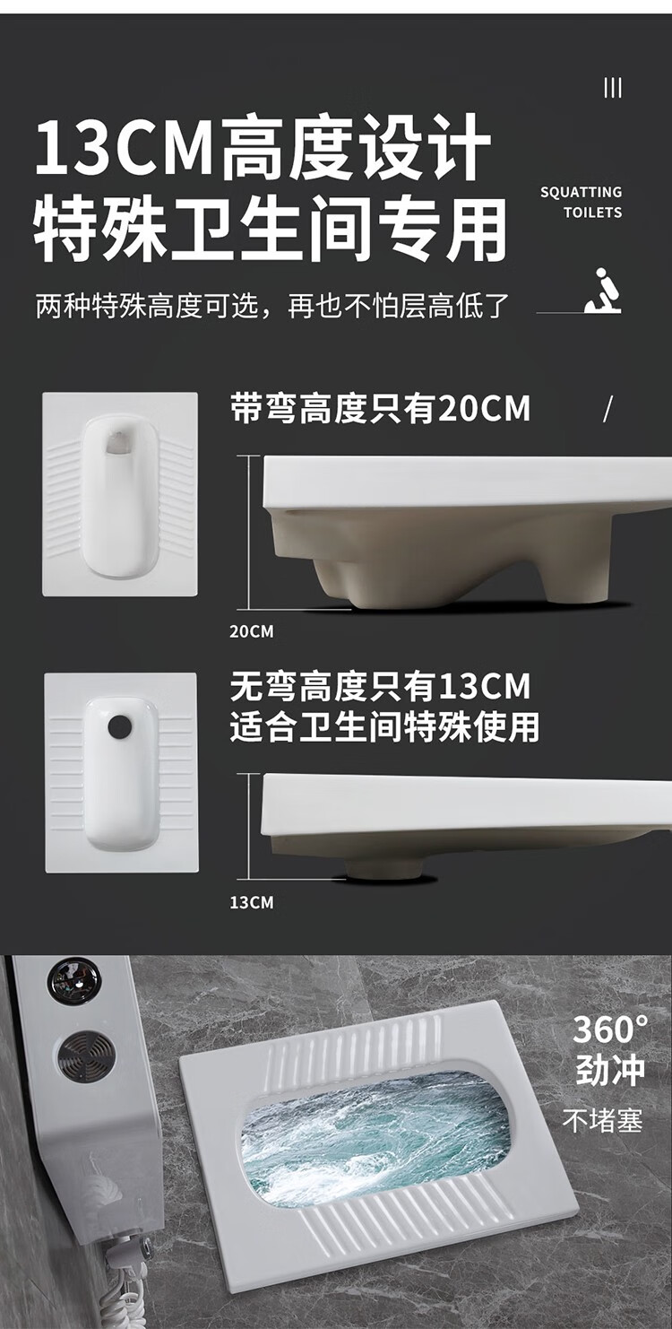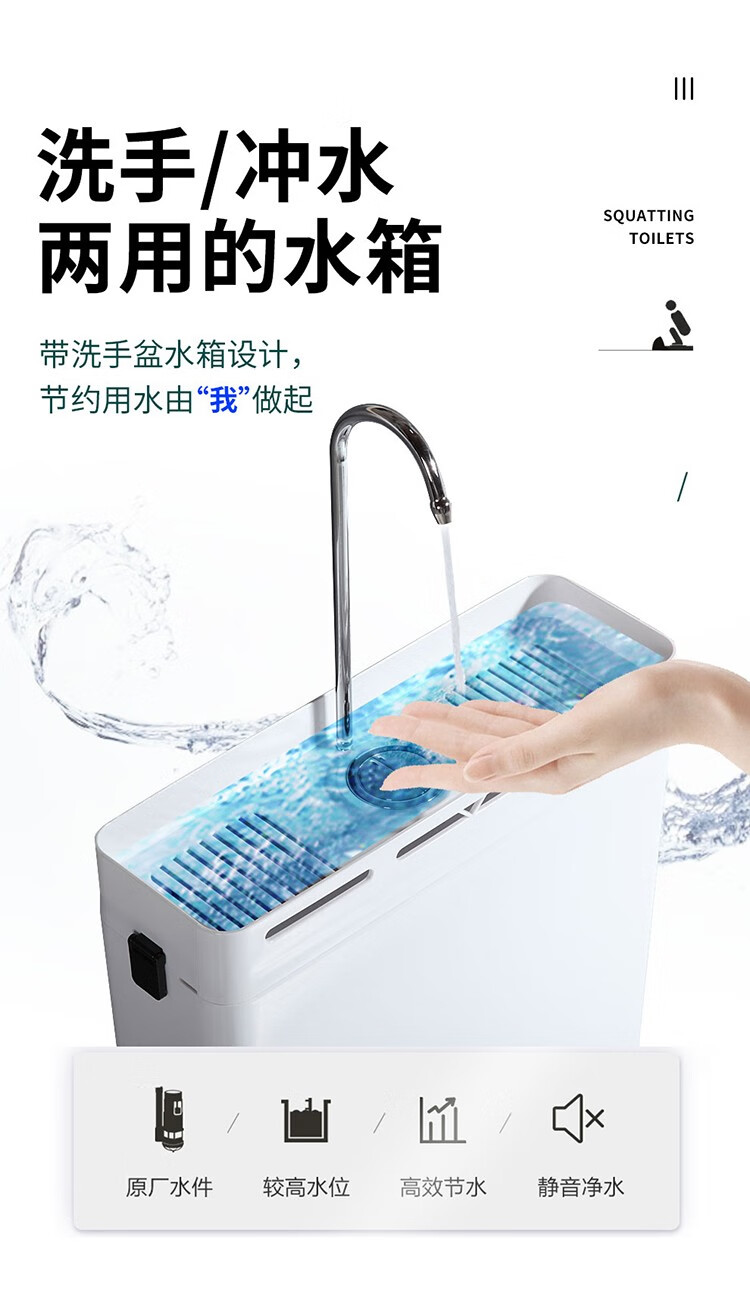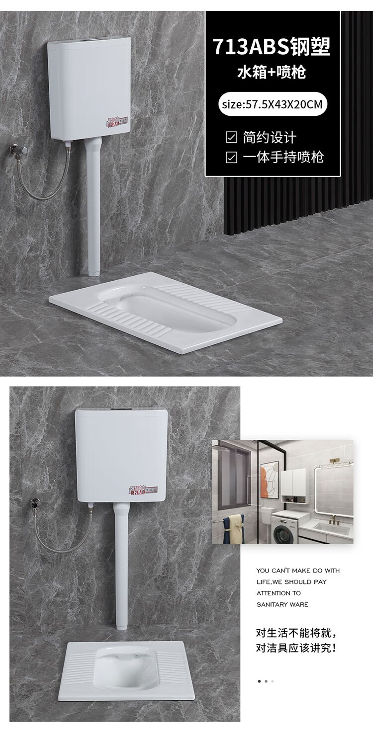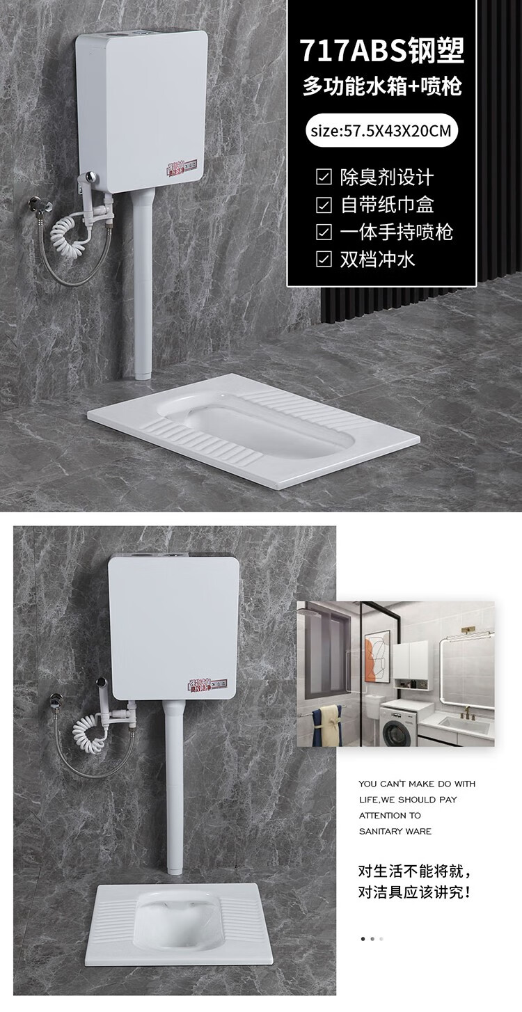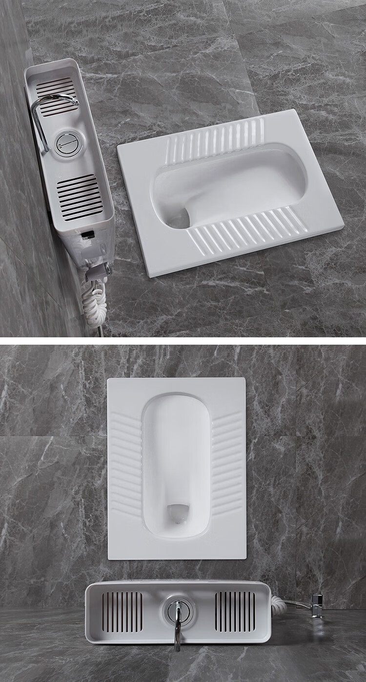 Huida 20cm thin ceramic squat toilet squat type home bathroom potty squat toilet deodorant flushing tank set 15 high no bend rear water outlet + 719ABS steel plastic hand washing