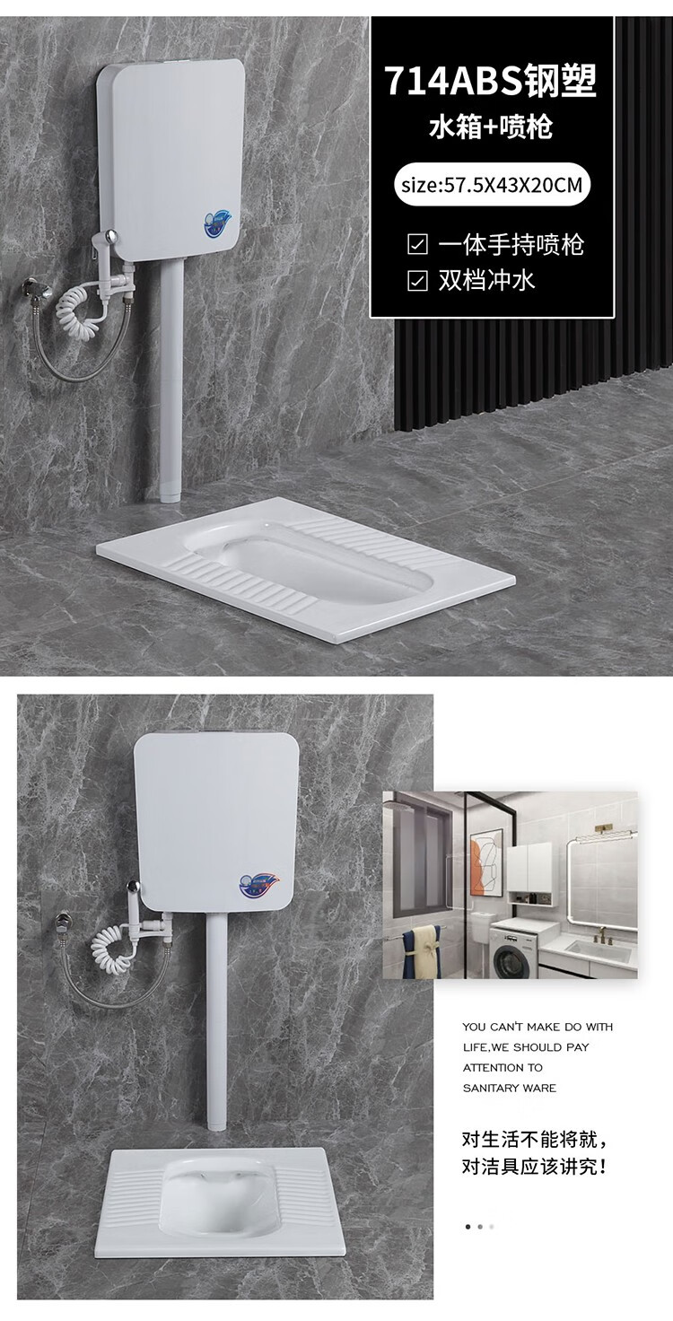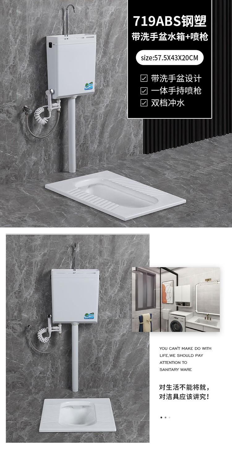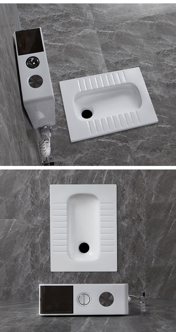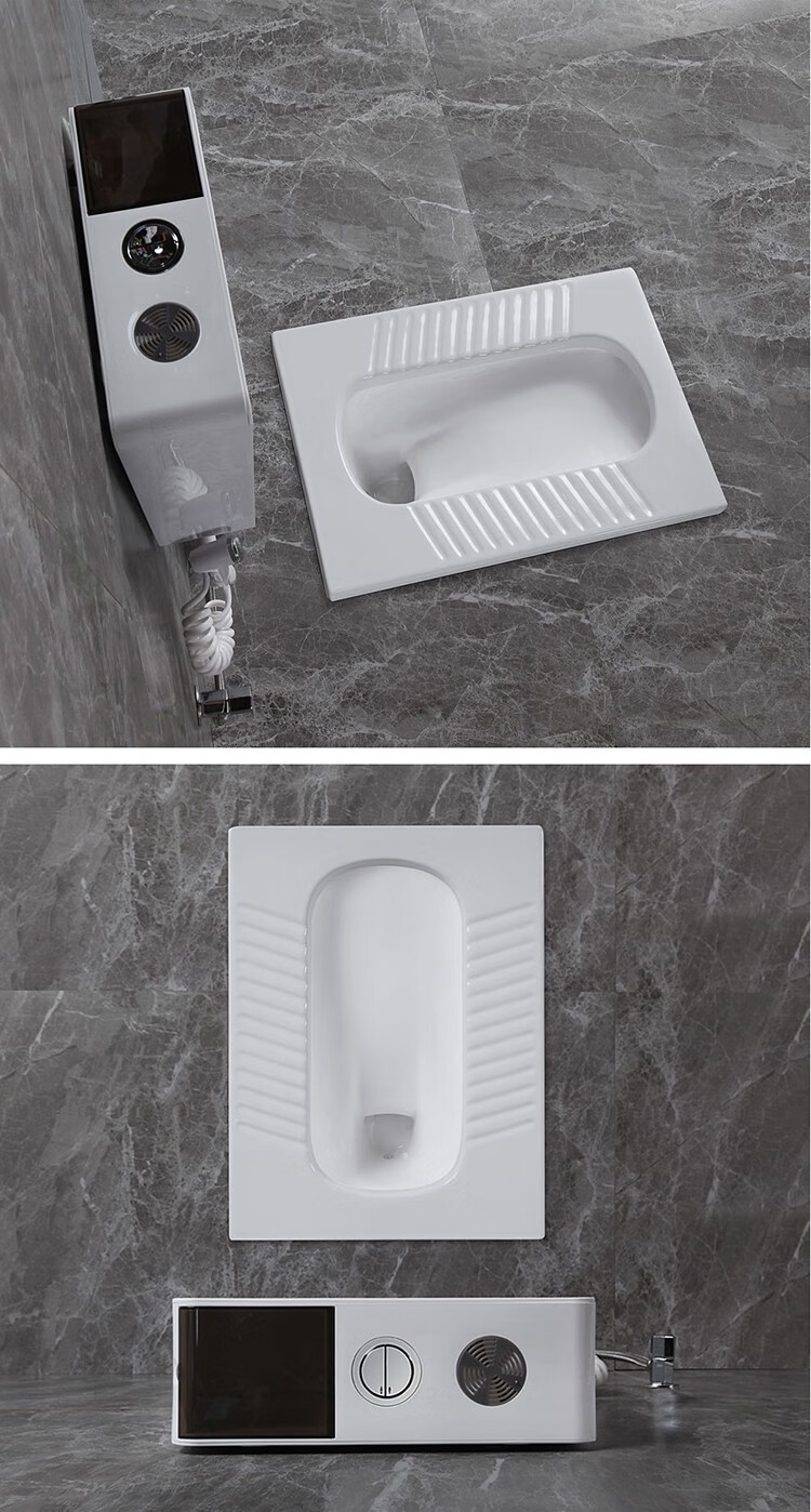 Huida 20cm thin ceramic squat toilet squat type home bathroom potty squat toilet deodorant flushing tank set 15 high no bend rear water outlet + 719ABS steel plastic hand washing