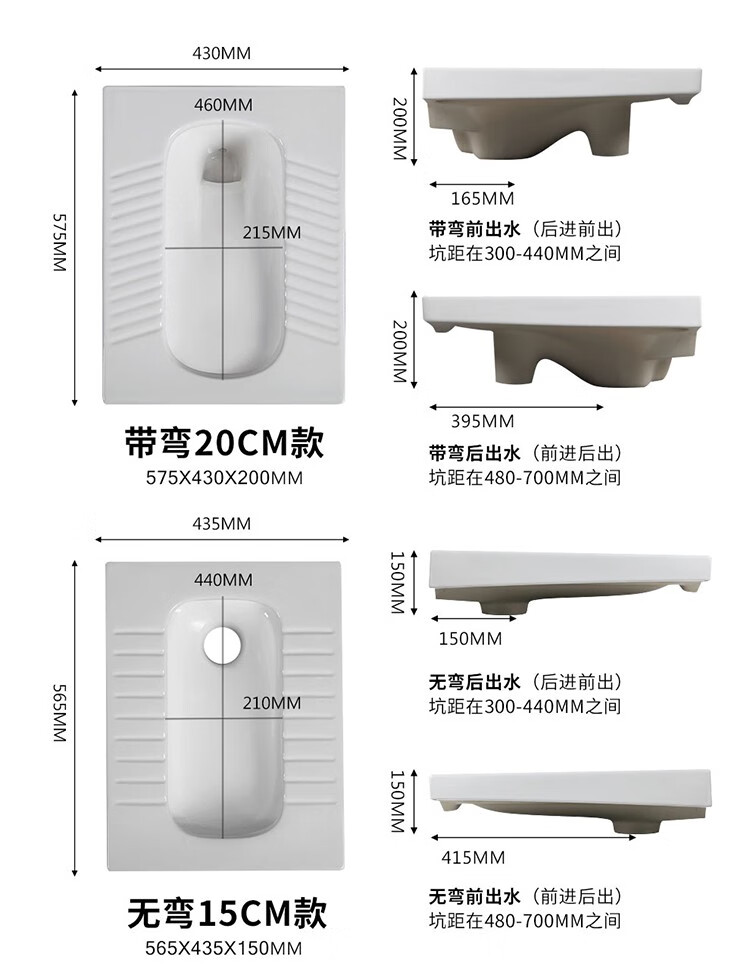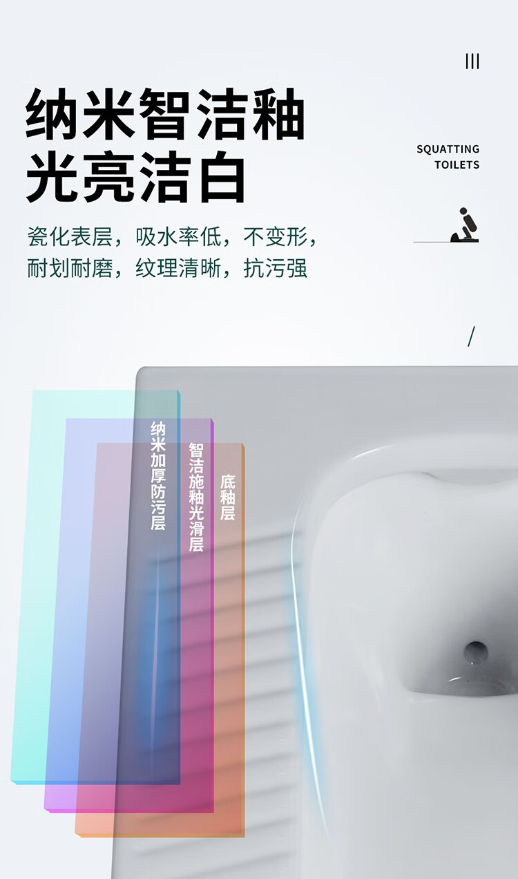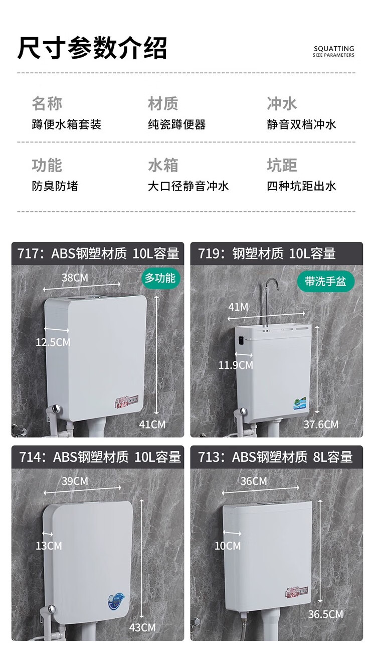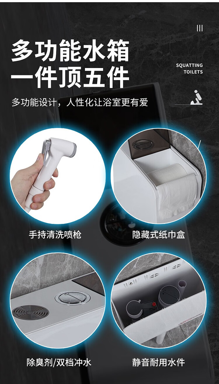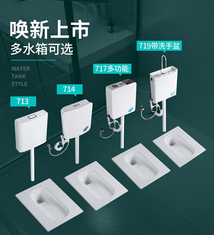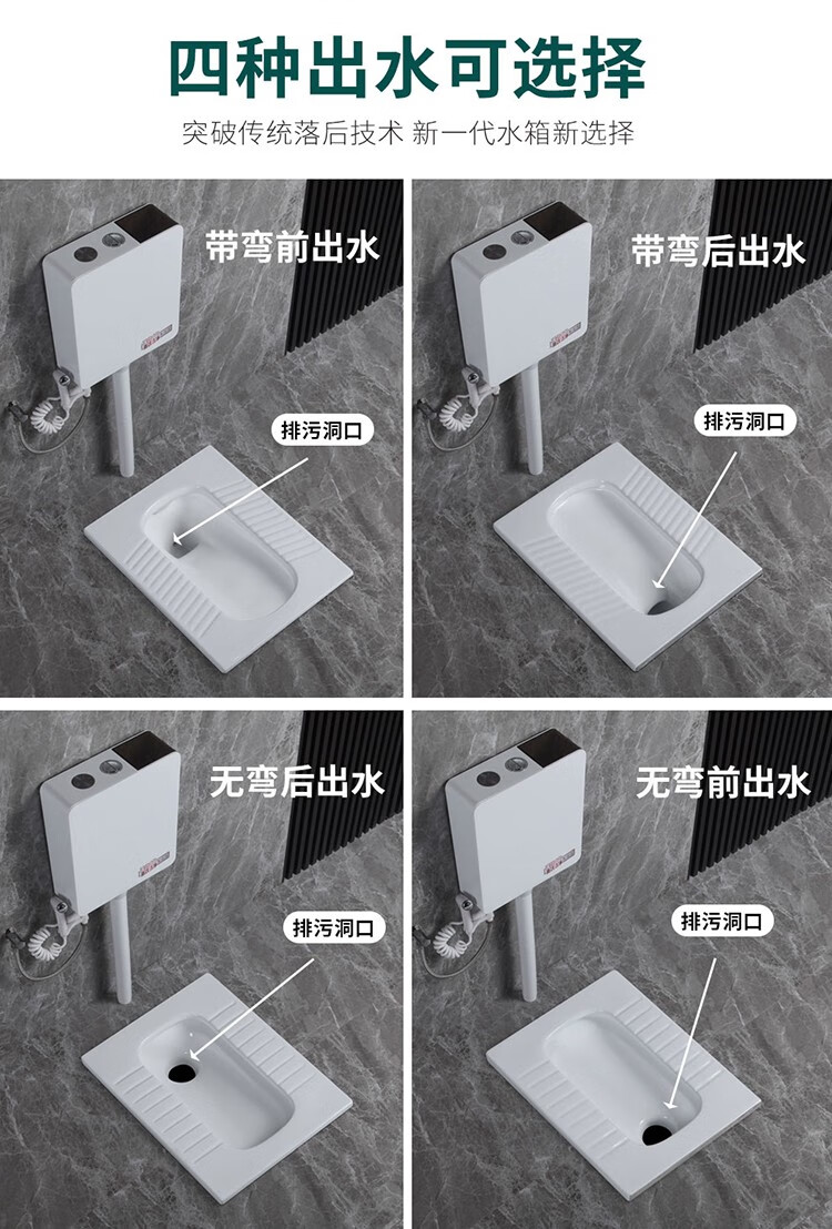 Huida 20cm thin ceramic squat toilet squat type home bathroom potty squat toilet deodorant flushing tank set 15 high no bend rear water outlet + 719ABS steel plastic hand washing