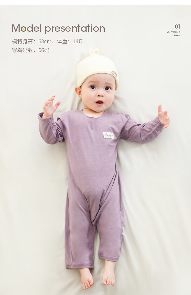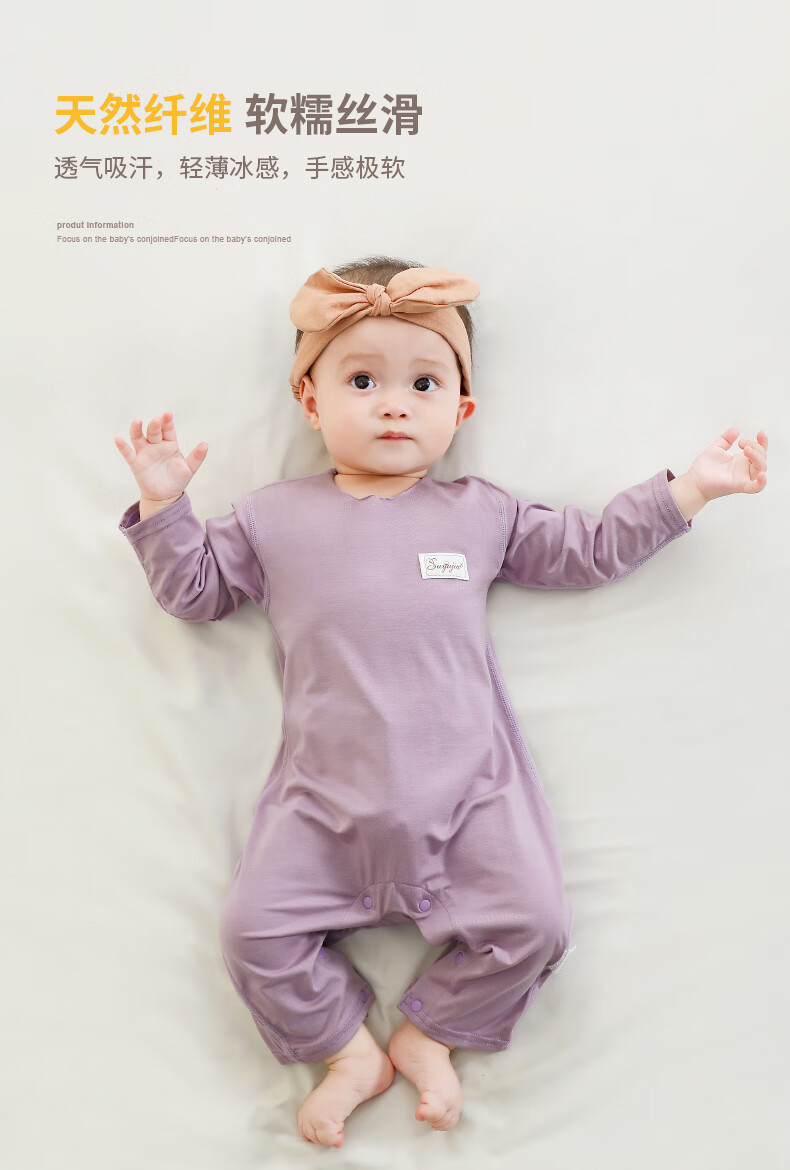 Suyujia Lenzing Modal baby pajamas summer thin baby jumpsuit summer thin long-sleeved romper for boys and girls purple long-sleeved Modal jumpsuit 73cm (recommended 19 Jin Jin equals 0.5 kg)