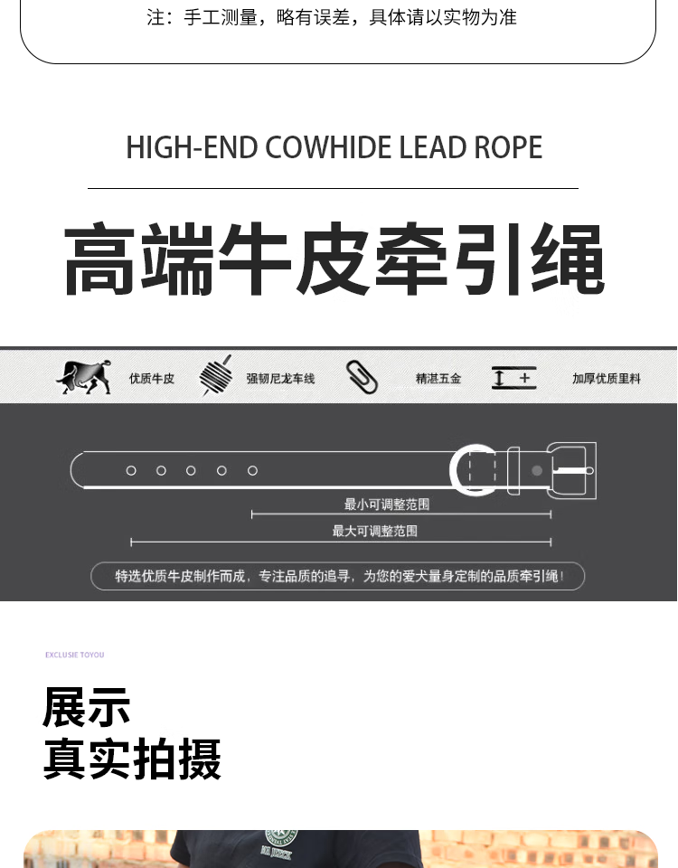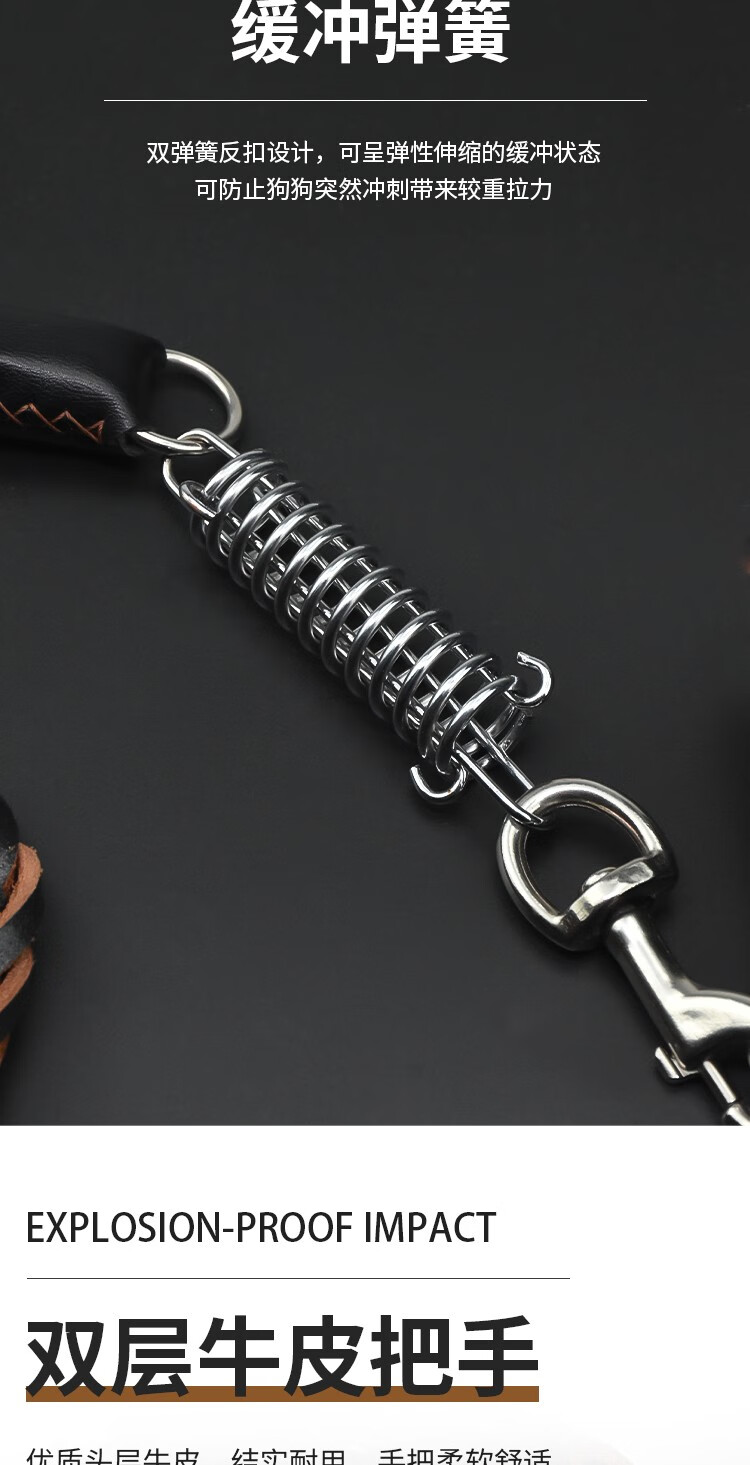 Medium and large dog leash cowhide dog chain golden retriever explosion-proof dog walking rope collar 3.5 black cowhide collar + leash set