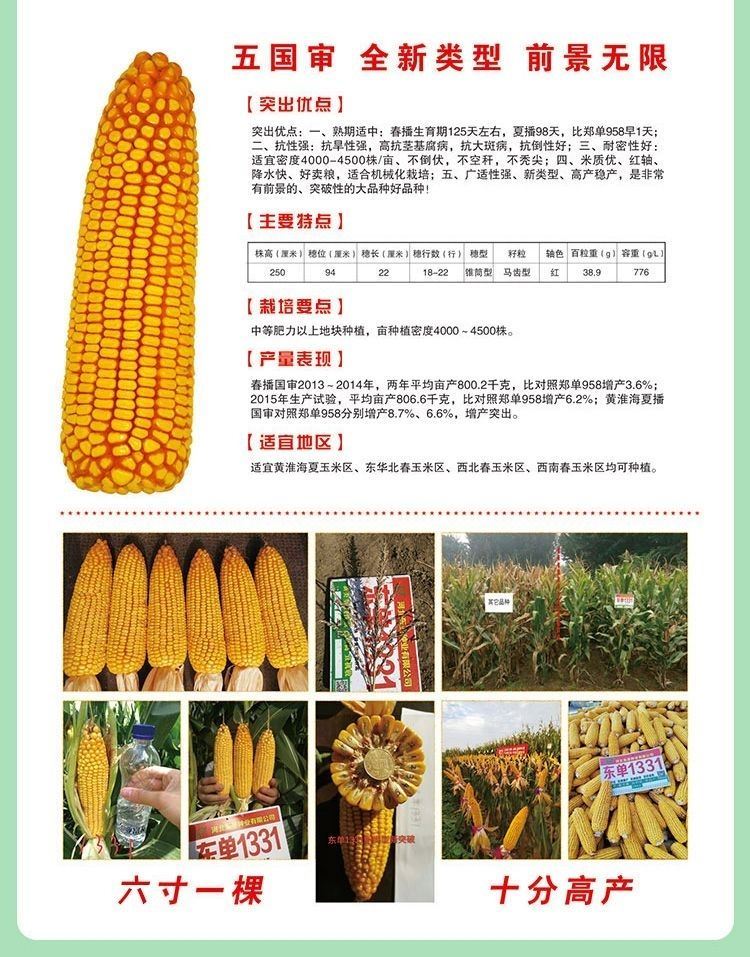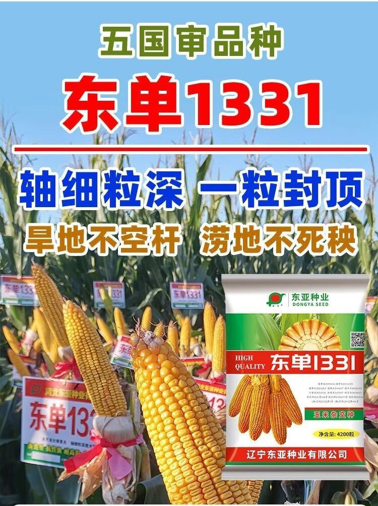 Wangyuanxing Dongya Double-National Review Dongdan 1331 Hybrid Corn Seed Small Steel Cannon - High Yield, Drought Resistance - Lodging Resistance - High Temperature Resistance - Dongdan 1331 (4200 grains) original factory quality and quantity