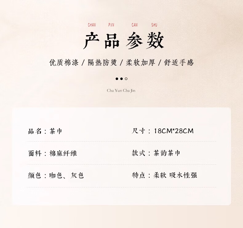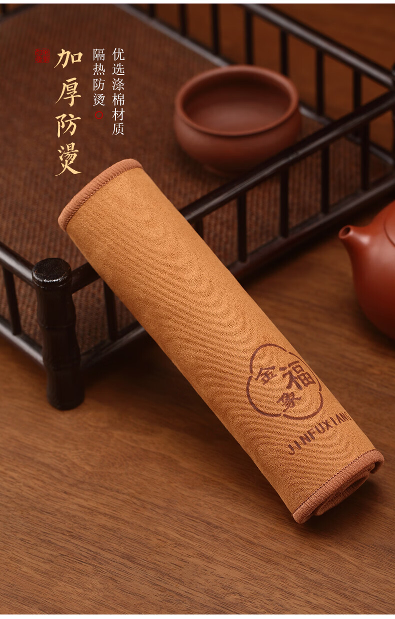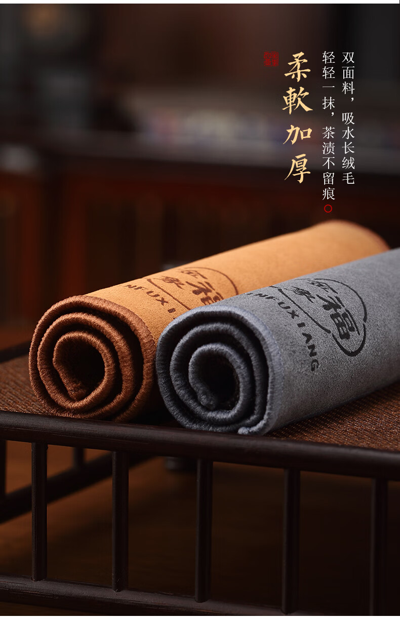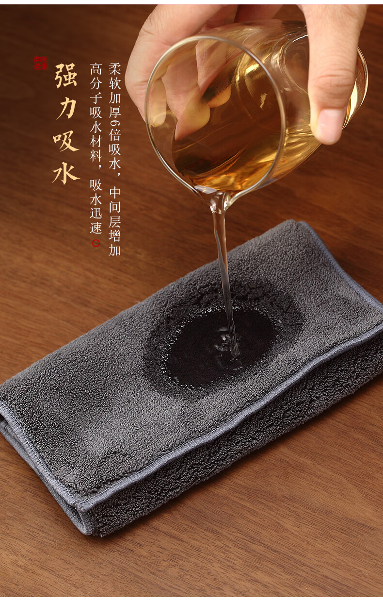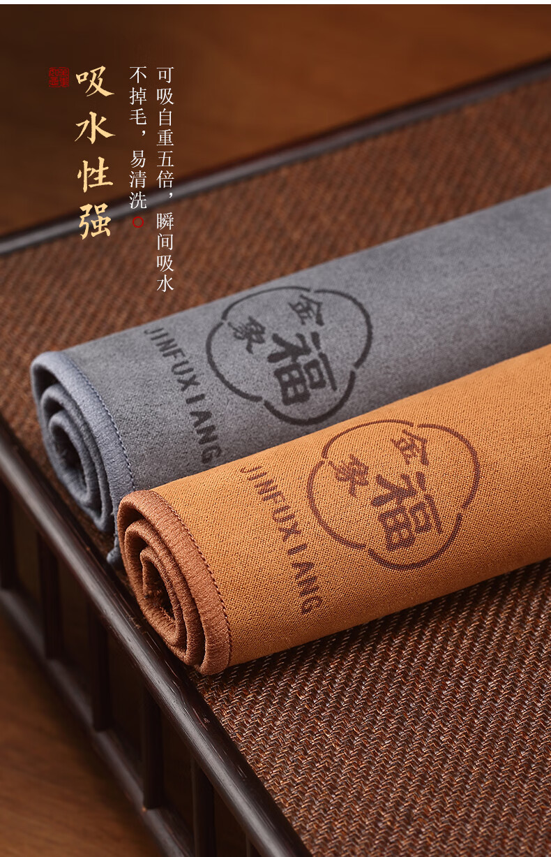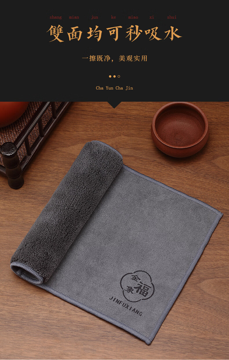 Jinfuxiang tea towel cloth absorbs water, high-end purple sand pot towel, thickened light luxury matcha mat, table tea set, cotton and linen special towel, gray + coffee color, two packs, great value