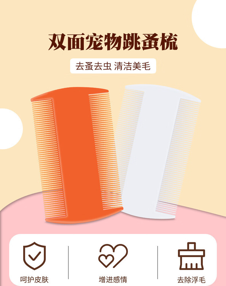 Flea comb pet comb hair removal plastic grate double-sided dense tooth double row flea comb cleaning and beauty supplies random color 2 pack