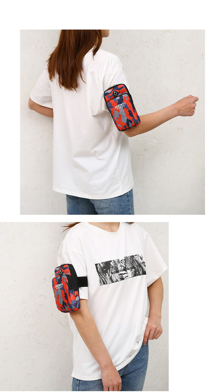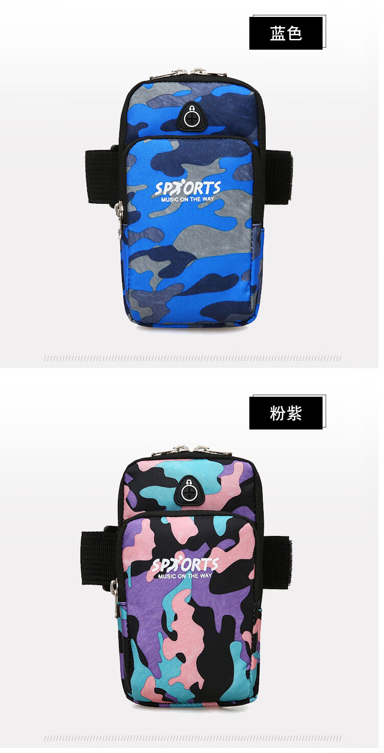 Chajin camouflage outdoor mobile phone bag for men and women, fitness headphones, sports running mobile phone arm bag, arm sleeve, arm strap, wrist bag, navy blue