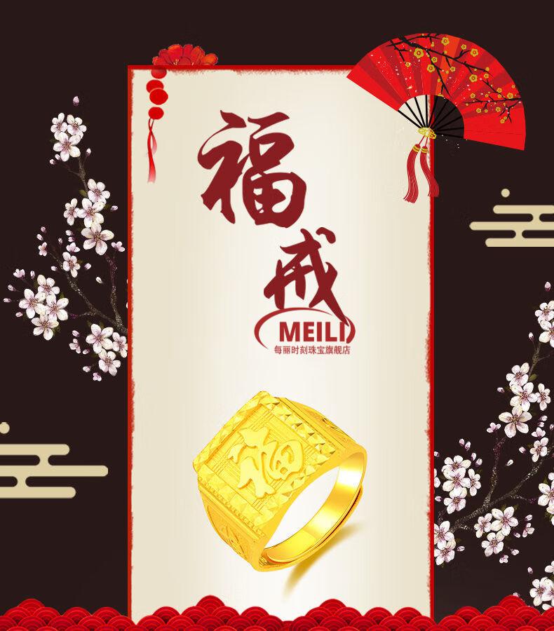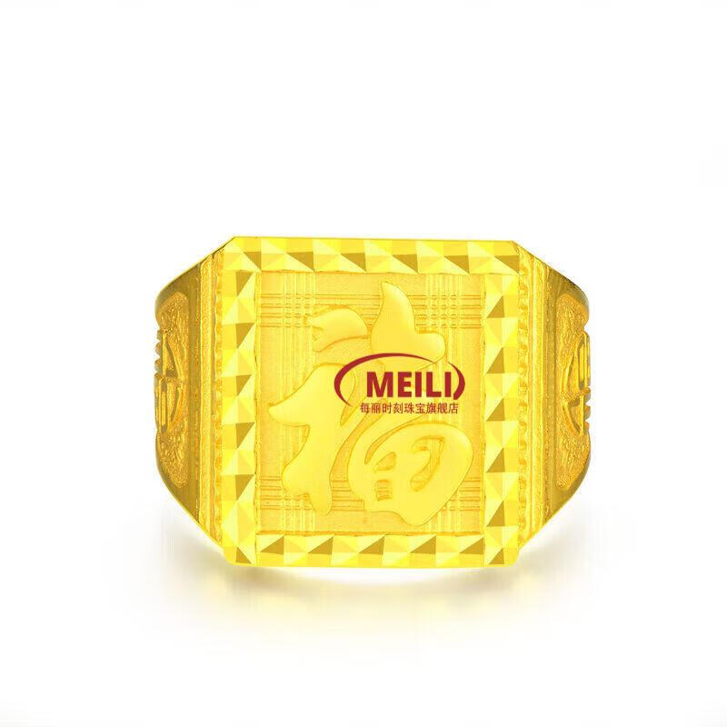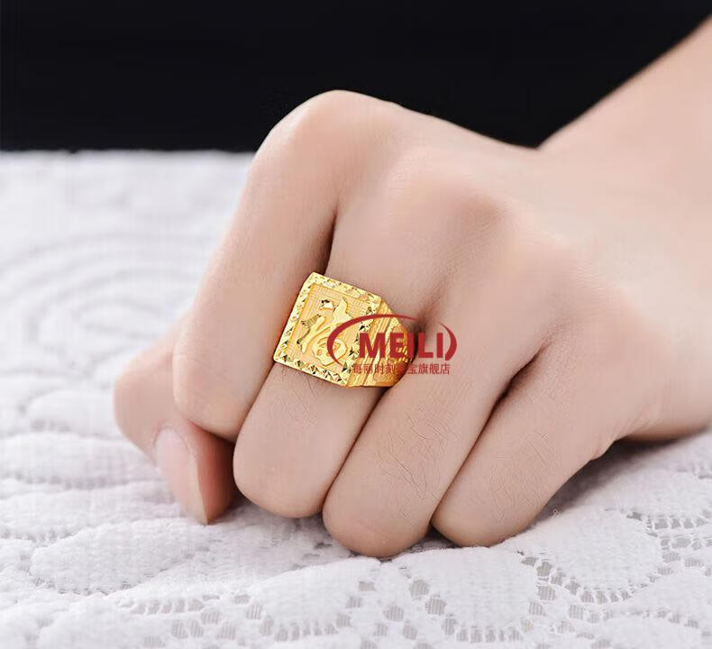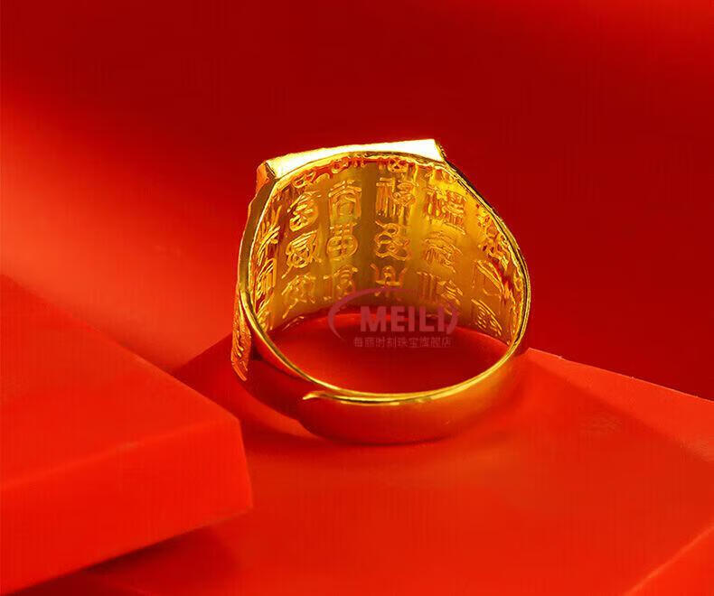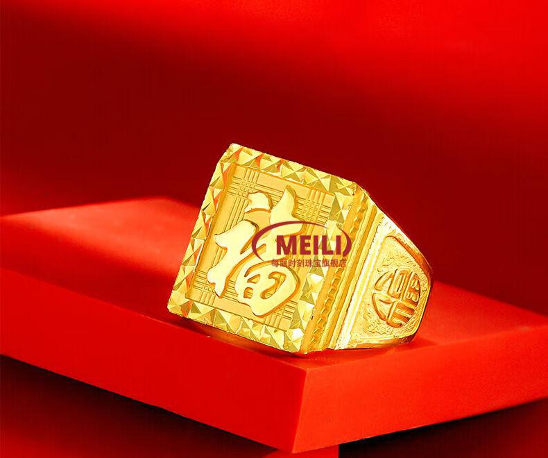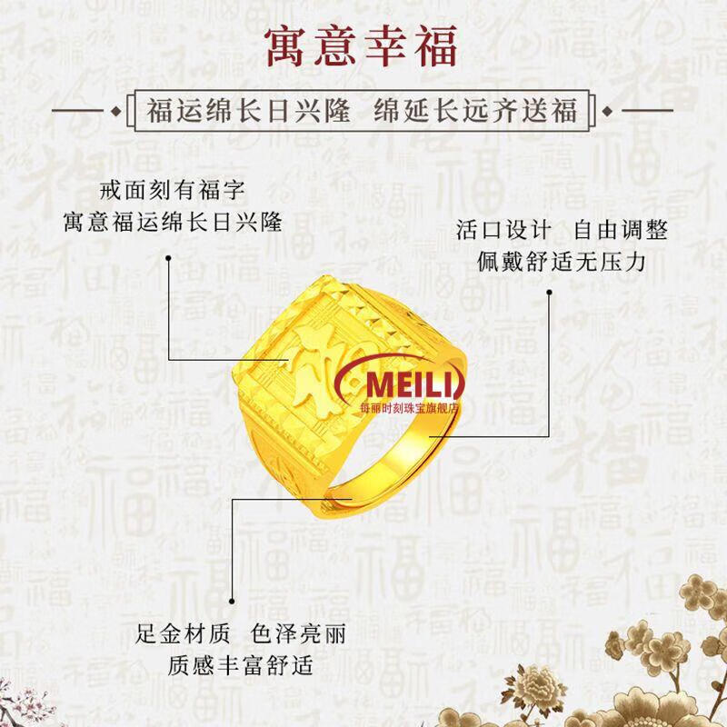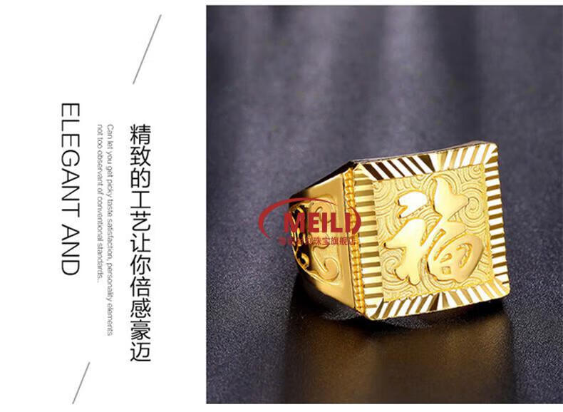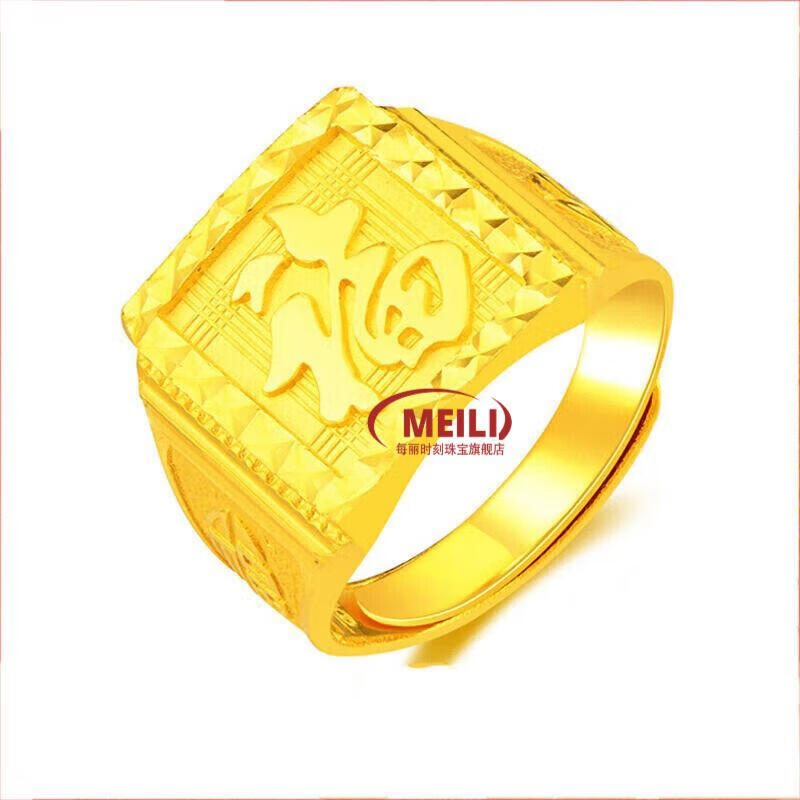 Fat Donglai's same style gold-plated silver ring for men Hong Kong duty-free blessing ring 999 real gold plate ring men's gold ring blessing ring standard