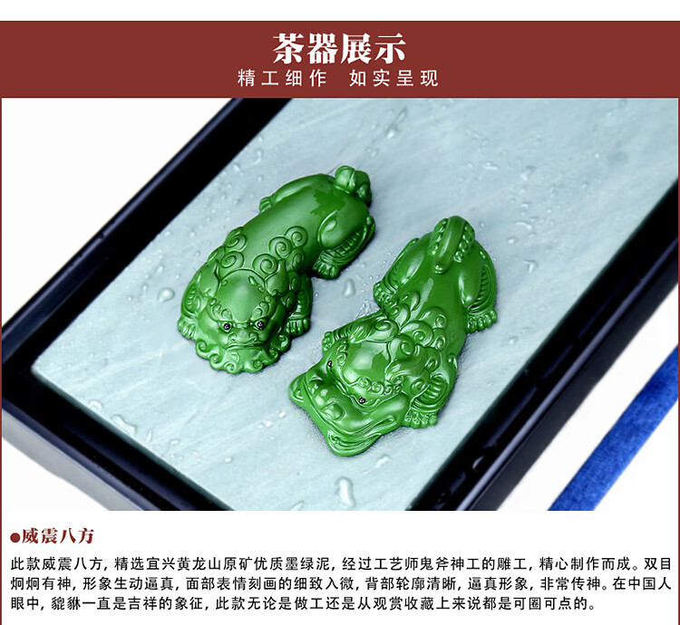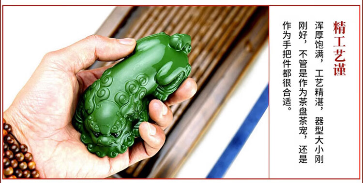 Chengyun Shangzun Yixing Zisha Tea Pet Creative Handmade Pixiu Ornament Lucky Accessories Tea Play Tea Ceremony Tea Table Color Changing Can Be Raised Mega Power Bafang (Pixiu) - Mother Model - Dark Green Clay