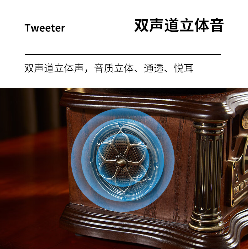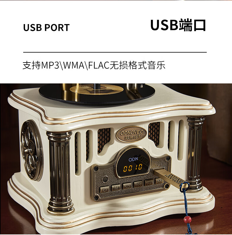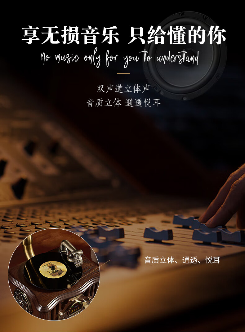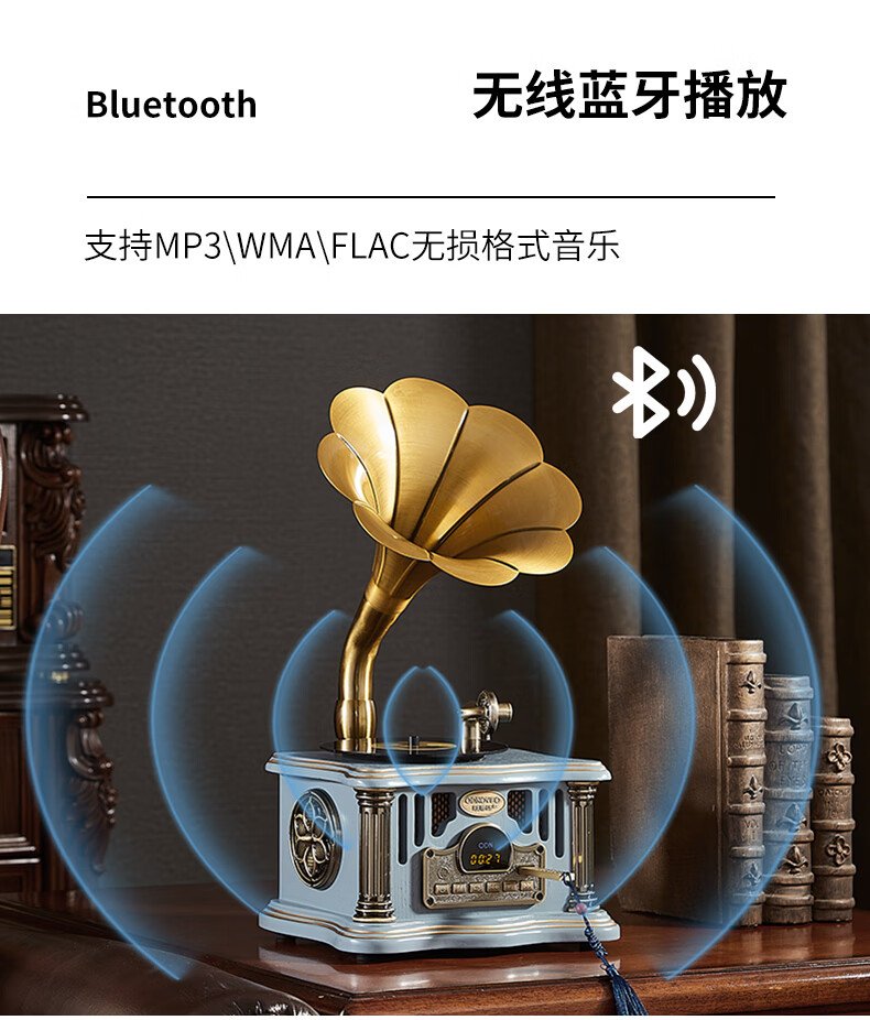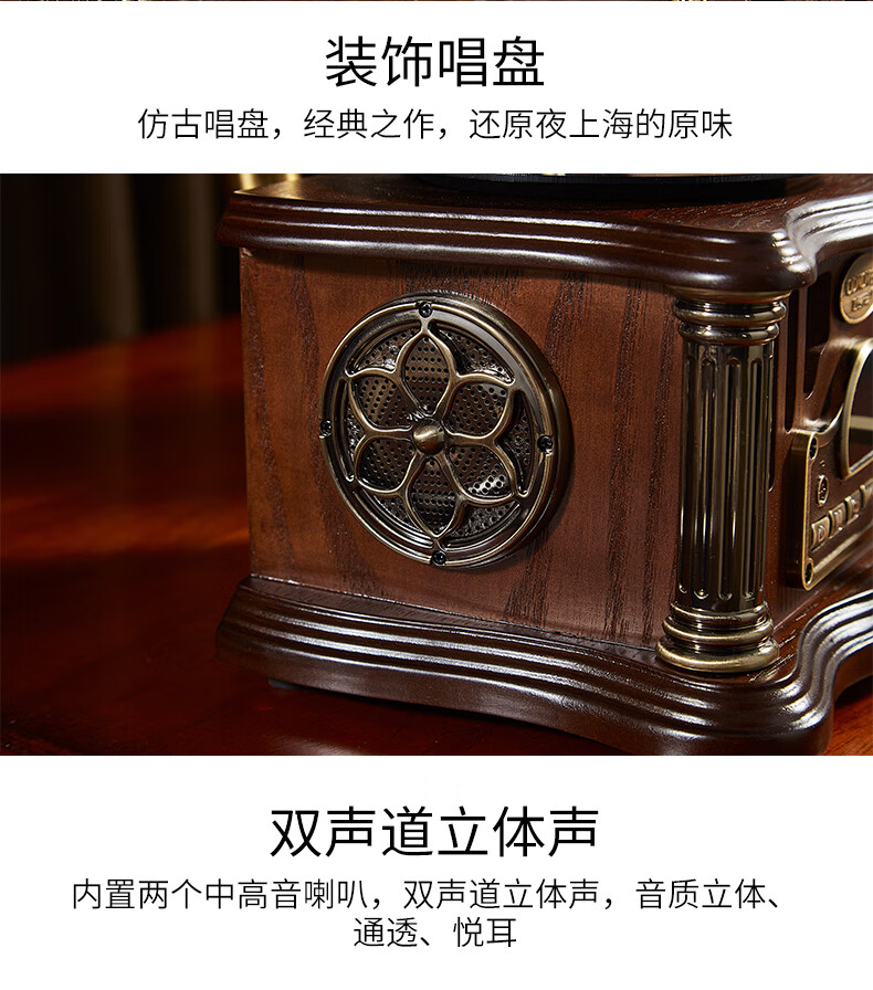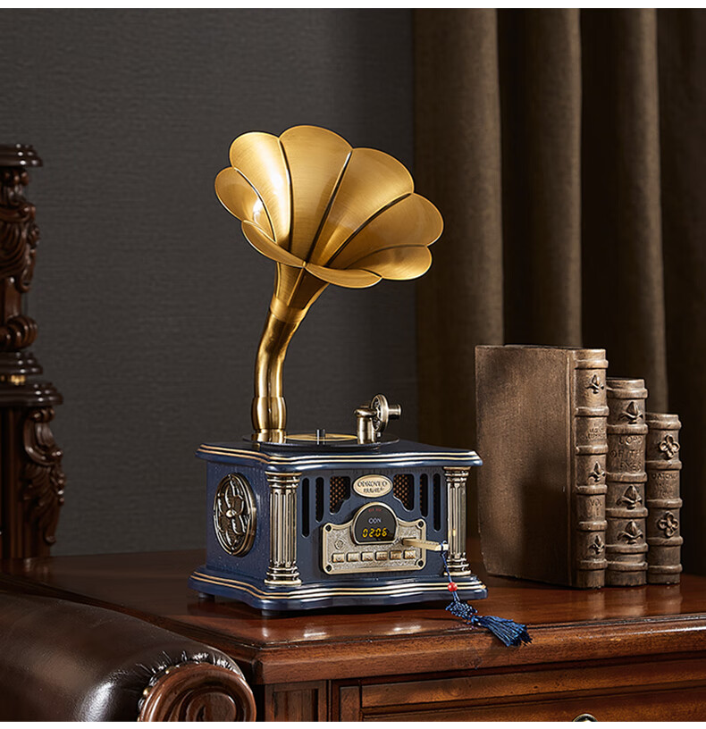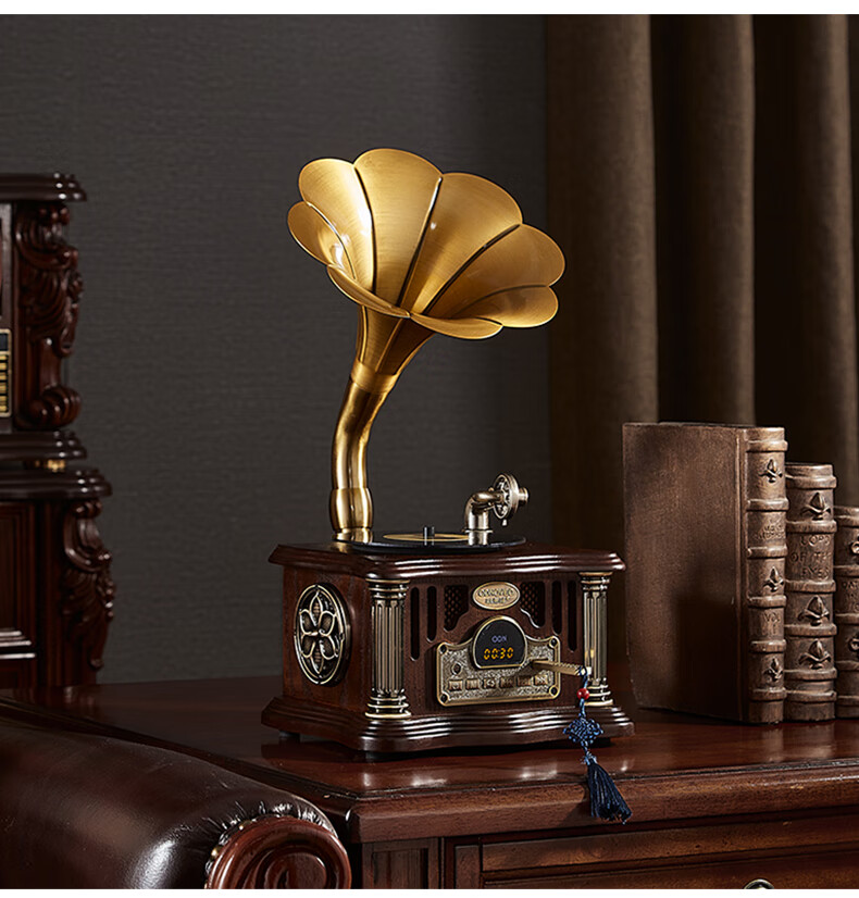 Otieno Antique Vinyl Phonograph Decoration Mini Charging Bluetooth Speaker Retro Birthday Gift Home Ornament Brown Plug-in Rechargeable Free Music USB Disk
