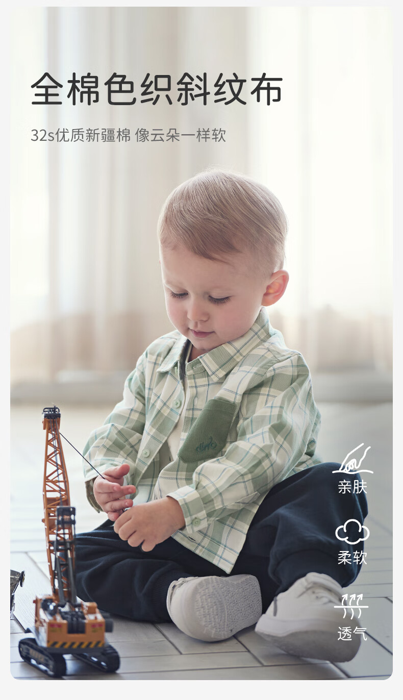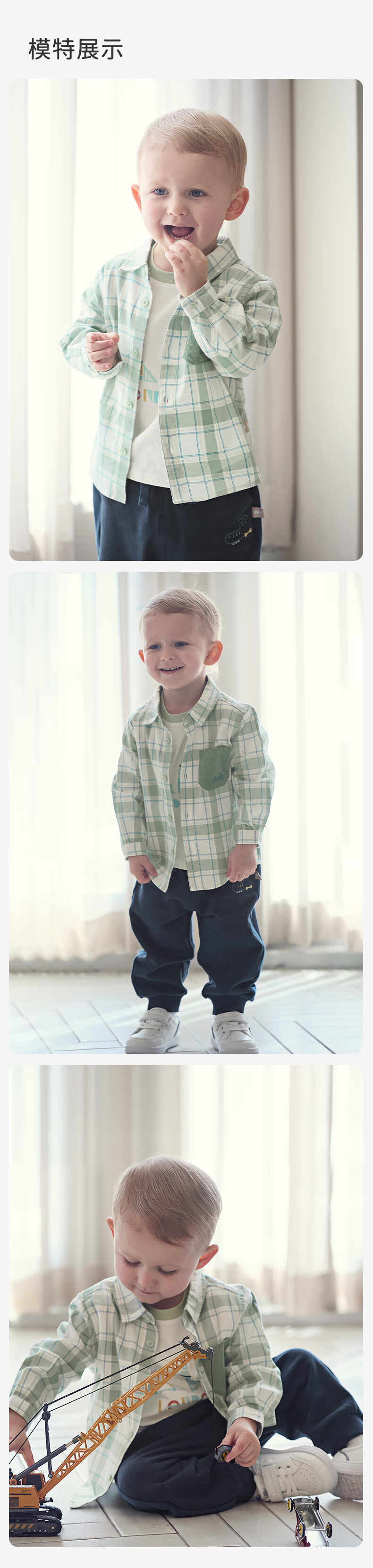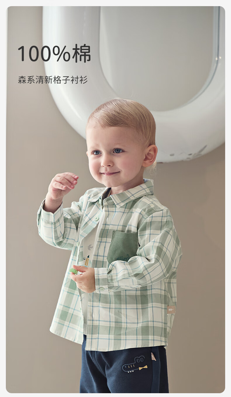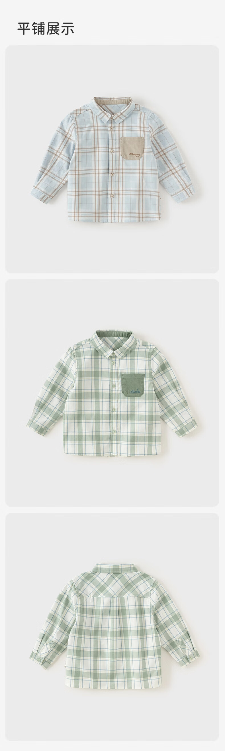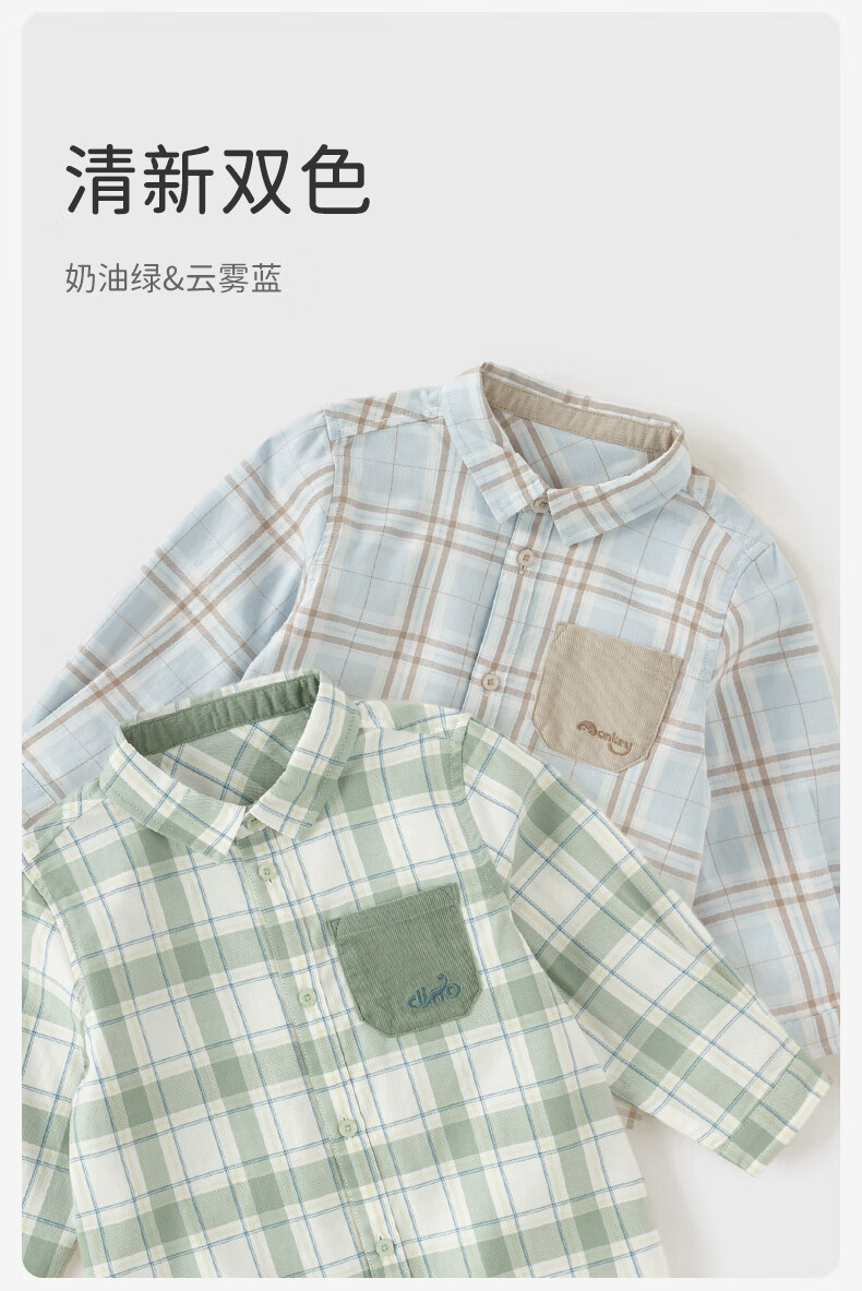 DAVE&BELLA boys' shirts baby long-sleeved tops children's shirts spring new children's clothing plaid shirt children's clothes blue plaid in stock 110 cm (recommended height 100-110cm)