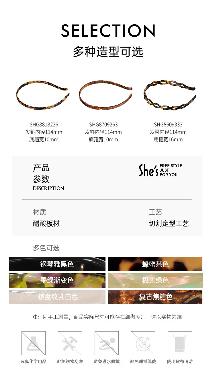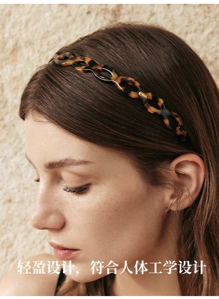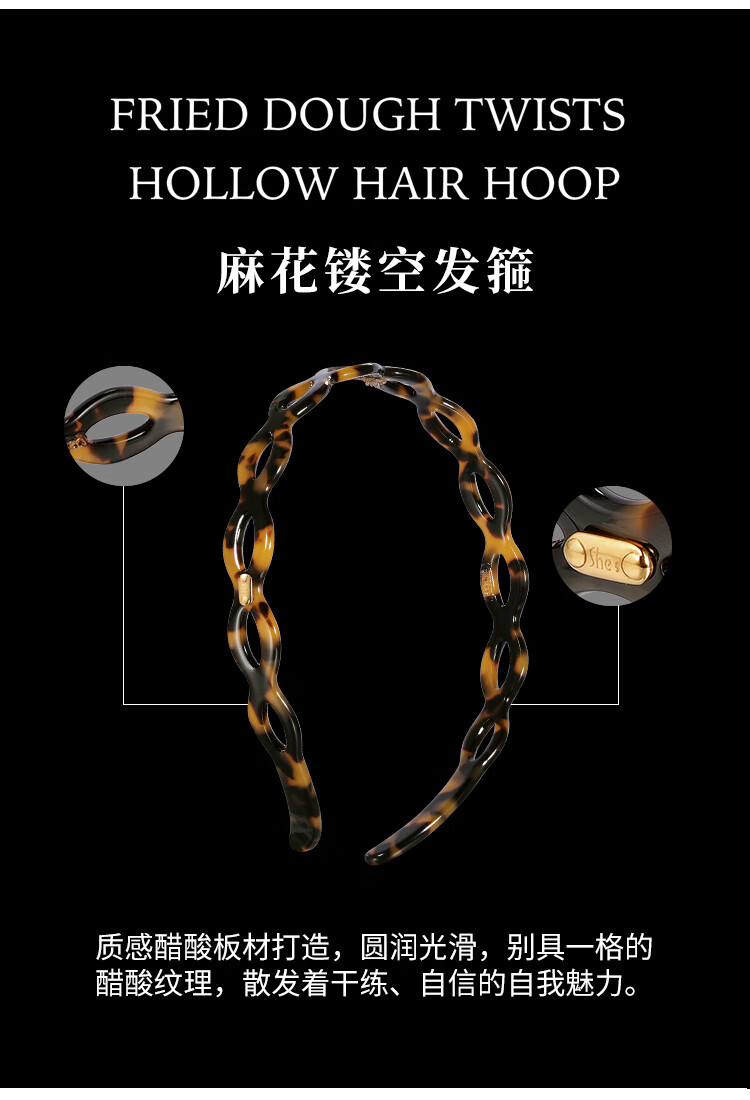 She s Akiko acetate plate headband, high-end hairpins, pressed hair headbands, hair accessories, birthday gifts for girlfriends, twist hollow style, tortoiseshell color SHG8609333F0