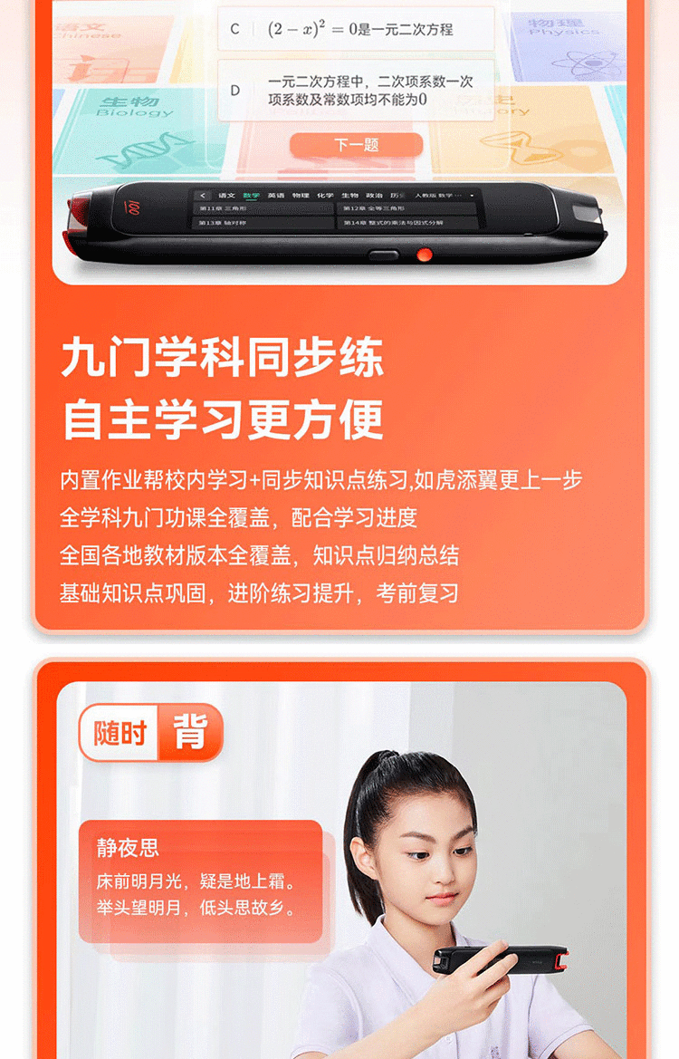 喵喵机作业帮全科学习笔二代双头扫题词典笔翻译笔英语点读笔 翻译机学习机电子词典 全科笔4G+W70基础版3.71英寸 8GB