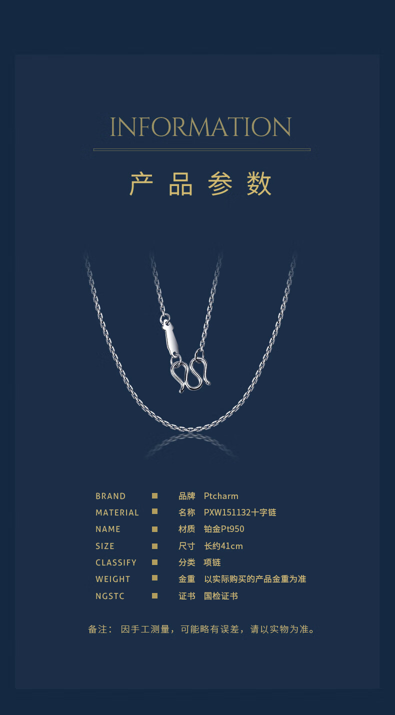 Pt.Charm new product pt950 platinum necklace platinum clavicle chain cross chain necklace women's gift authentic plain chain If not in stock, it can be customized. Take 2.5g as an example
