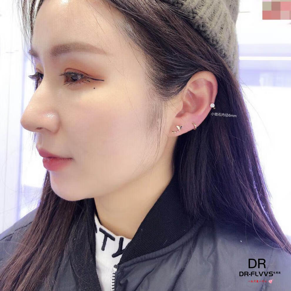 Fat Donglai same style K gold mini earrings Korean fashion 14k 10 gold ear bone ring ear single