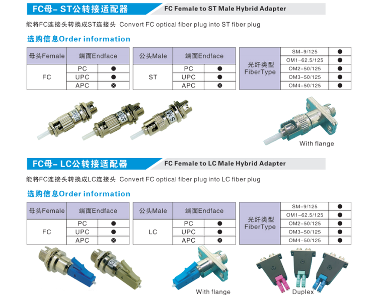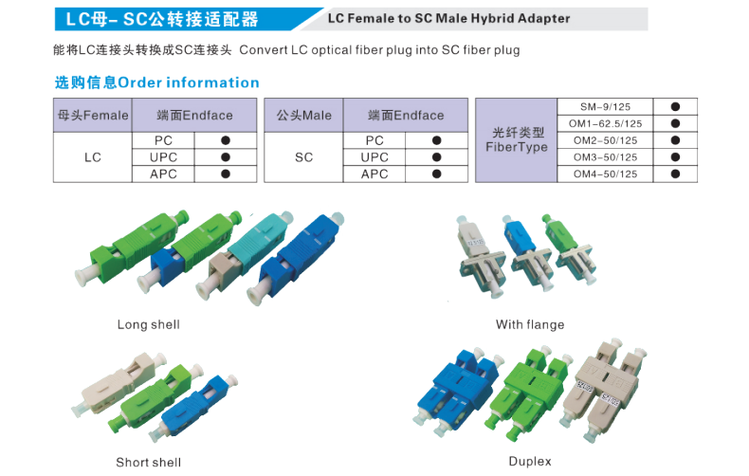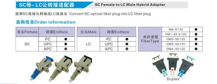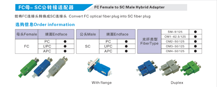 LC FC SC ST E2000 LSH DIN SMA single mode male to female fiber optic adapter conversion head Yin and Yang FC/UPC female-SC/UPC male SM